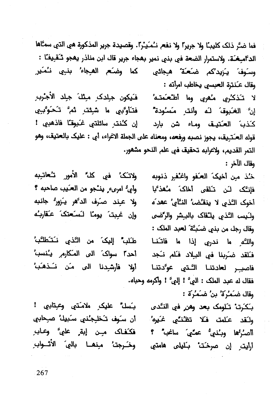 فما ضر ذلك كليبا ولا جريرا ولا نفع نميرا. وقصيدة جرير مذكورة هي التي سماها الدامغة. ولاستمرار الضعة في بني نمير بهجاء جرير قال أبن مناذر يهجو ثقيفا: