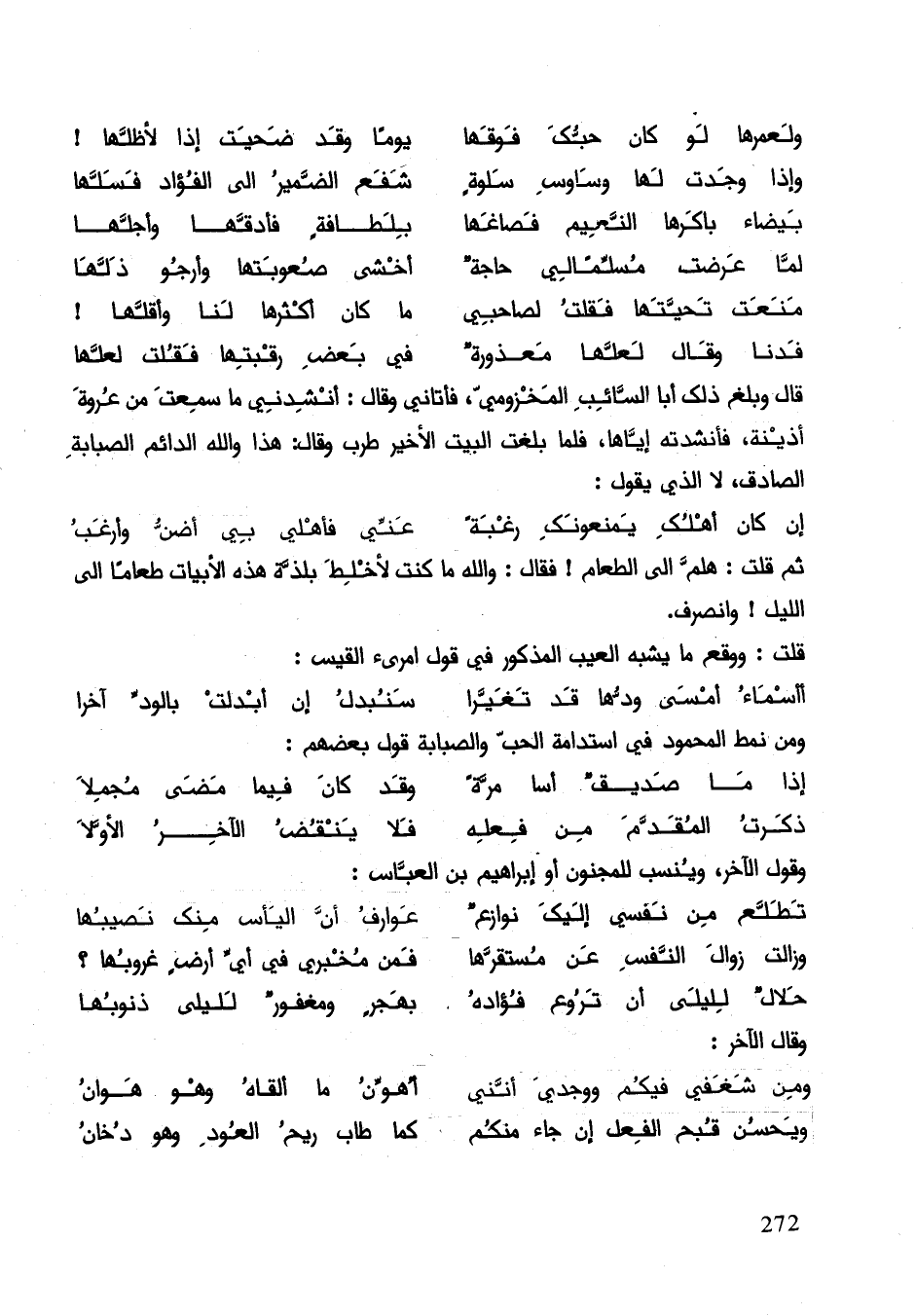 ومن نمط المحمود في استدامة الحب والصبابة قول بعضهم: