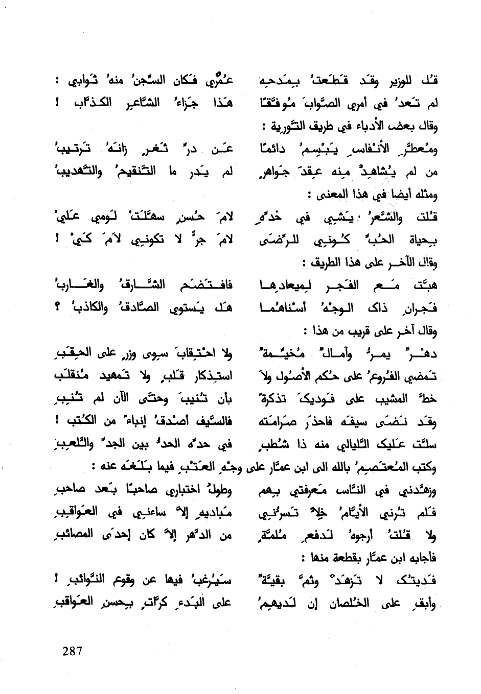 وكتب المستعصم بالله إلى أبن عمار على وجه العتب فيما بلغه عنه: