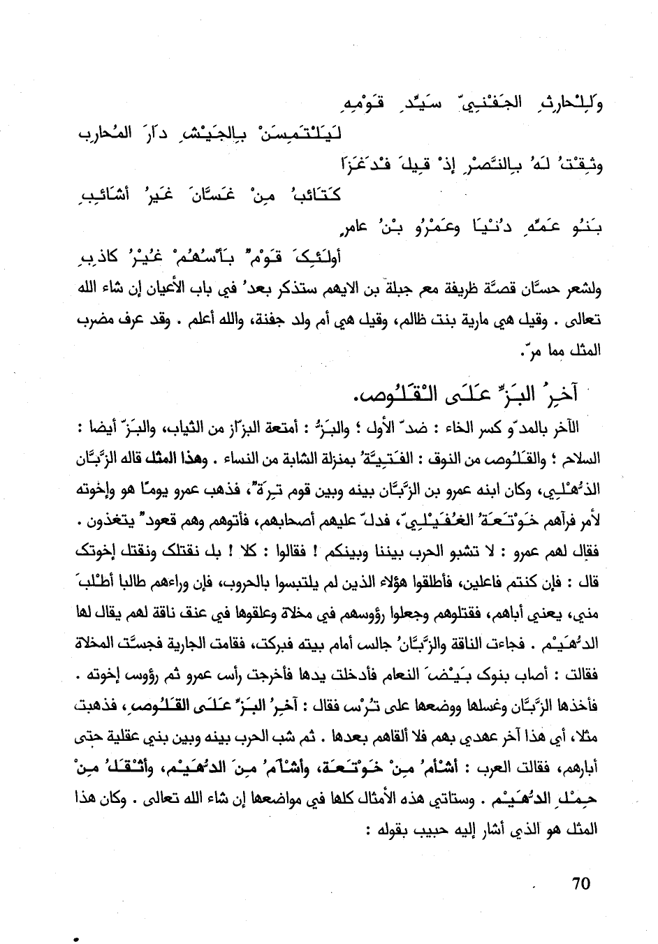 ولشعر خسان قصة ظريفة مع جبلة بن الأيهم ستذكر في باب الأعيان إن شاء الله تعالى. وقيل هي مارية بنت ظالم، وقيل هي أم ولد جفنة، والله اعلم. وقد عرف مضرب المثل مما مر.