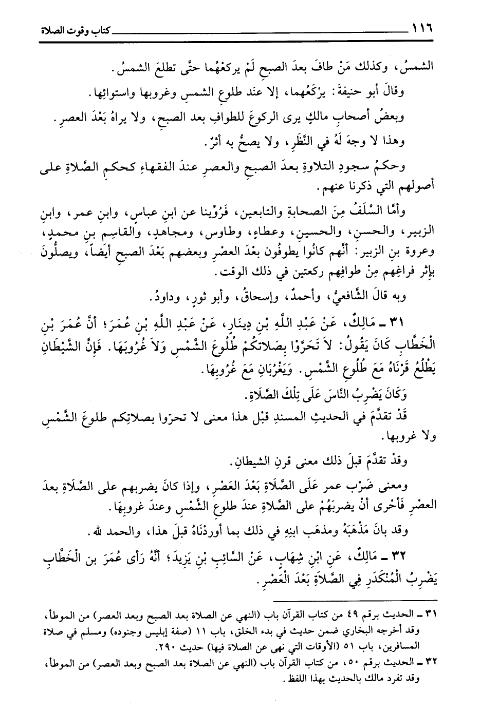 32 - مالك عن بن شِهَابٍ عَنِ السَّائِبِ بْنِ يَزِيدَ أَنَّهُ رَأَى عُمَرَ بْنَ الْخَطَّابِ يَضْرِبُ الْمُنْكَدِرَ فِي الصَّلَاةِ بعد العصر