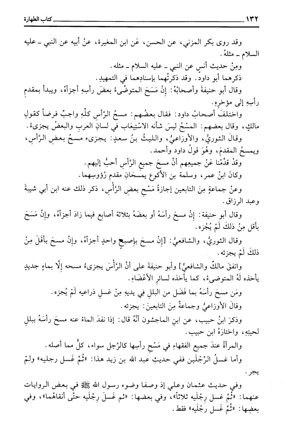 وَاتَّفَقَ مَالِكٌ وَالشَّافِعِيُّ وَأَبُو حَنِيفَةَ عَلَى أَنَّ الرَّأْسَ يُجْزِئُ مَسْحُهُ إِلَّا بِمَاءٍ جَدِيدٍ يَأْخُذُهُ لَهُ الْمُتَوَضِّئُ كَمَا يَأْخُذُهُ لِسَائِرِ الْأَعْضَاءِ