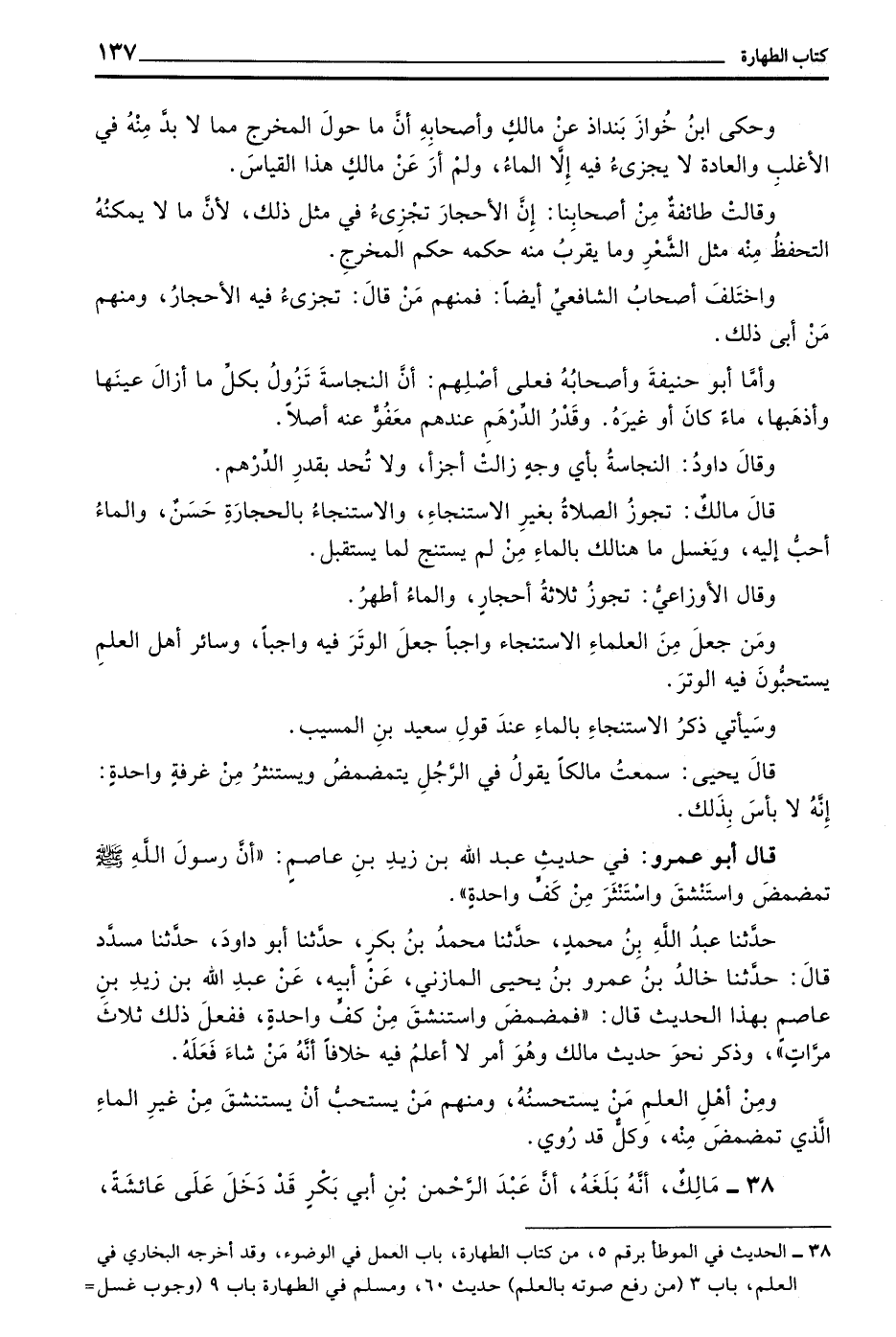 وَمَنْ جَعَلَ مِنَ الْعُلَمَاءِ الِاسْتِنْجَاءَ وَاجِبًا جَعَلَ الْوِتْرَ فِيهِ وَاجِبًا وَسَائِرُ أَهْلِ الْعِلْمِ يَسْتَحِبُّونَ فِيهِ الْوِتْرَ