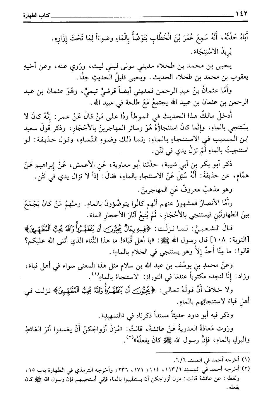 وَلَا خِلَافَ أَنَّ قَوْلَهُ تَعَالَى (يُحِبُّونَ أَنْ يَتَطَهَّرُوا وَاللَّهُ يُحِبُّ الْمُطَّهِّرِينَ) نَزَلَتْ فِي أَهْلِ قُبَاءَ لِاسْتِنْجَائِهِمْ بِالْمَاءِ