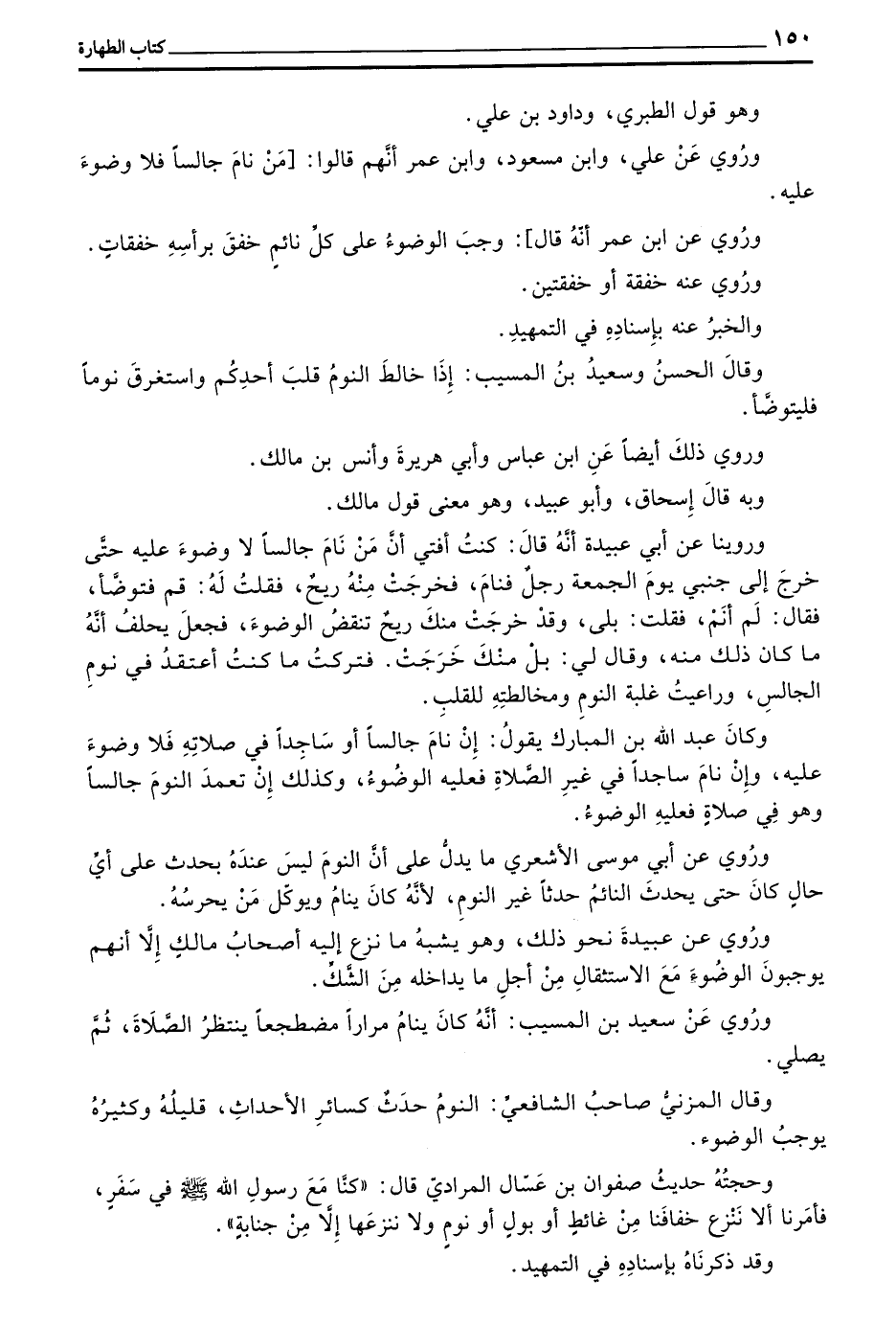 وروي عن بن عُمَرَ أَنَّهُ قَالَ وَجَبَ الْوُضُوءُ عَلَى كُلِّ نَائِمٍ خَفَقَ بِرَأْسِهِ خَفَقَاتٍ
