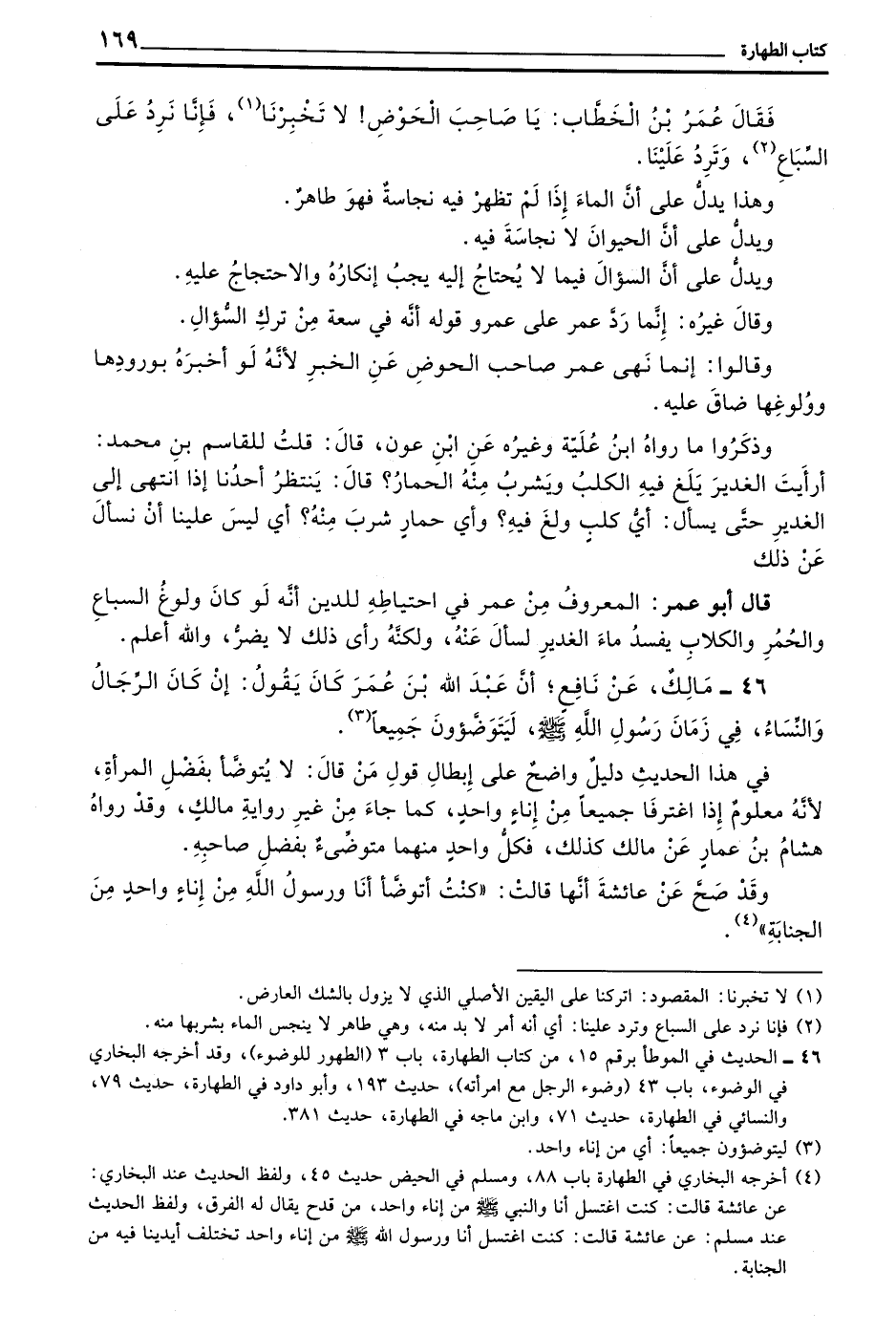 قَالَ أَبُو عُمَرَ الْمَعْرُوفُ مِنْ عُمَرَ فِي احْتِيَاطِهِ لِلدِّينِ أَنَّهُ لَوْ كَانَ وُلُوغُ السِّبَاعِ وَالْحُمُرِ وَالْكِلَابِ يُفْسِدُ مَاءَ الْغَدِيرِ لَسَأَلَ عَنْهُ وَلَكِنَّهُ رَأَى ذَلِكَ لَا يَضُرُّ وَاللَّهُ أَعْلَمُ