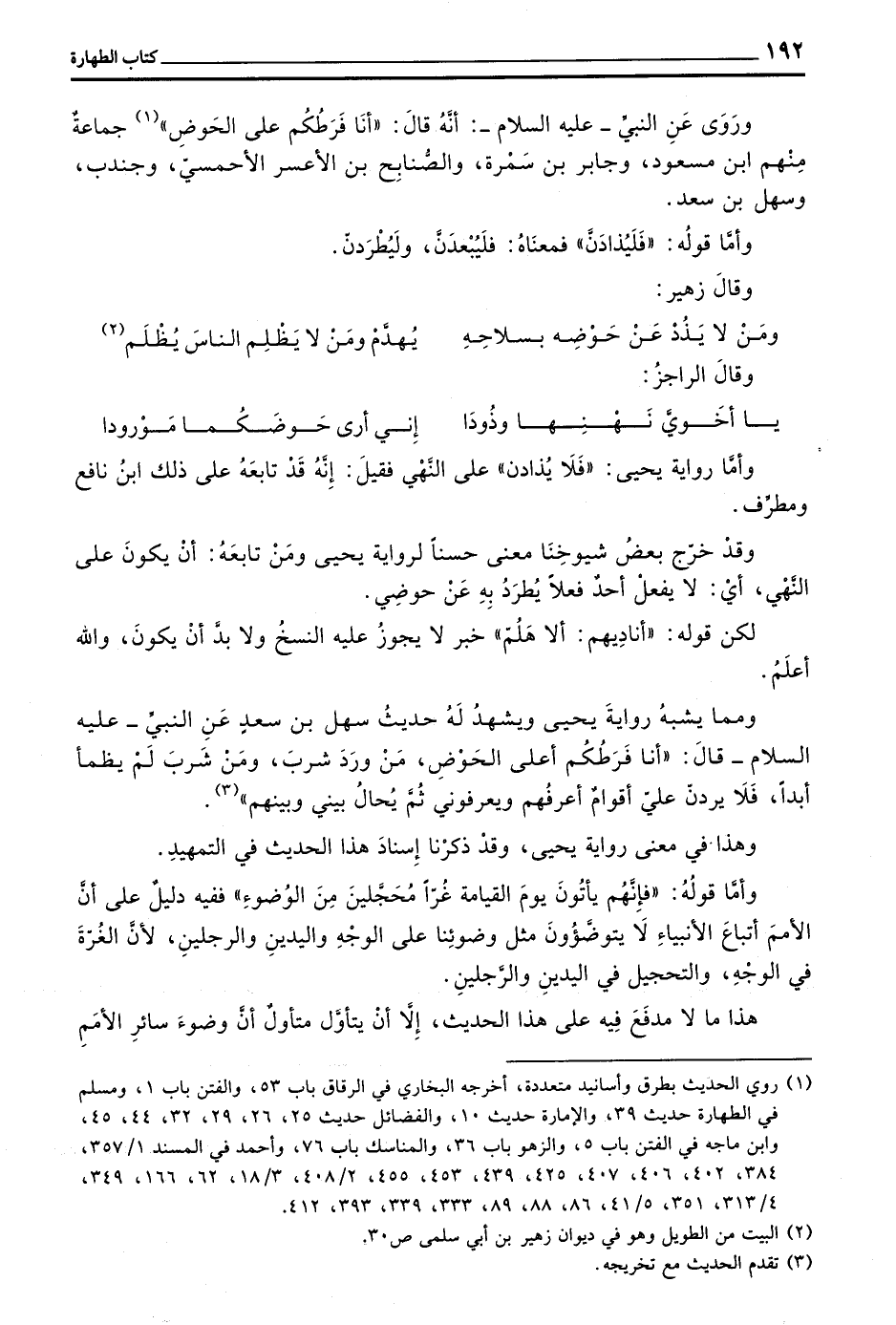 وَرُوِيَ عَنِ النَّبِيِّ - عَلَيْهِ السَّلَامُ - أَنَّهُ قَالَ ((أنا فرطكم على الحوض)) جماعة منهم بن مَسْعُودٍ وَجَابِرُ بْنُ سَمُرَةَ وَالصُّنَابِحُ بْنُ الْأَعْسَرِ الْأَحْمَسِيُّ وَجُنْدَبٌ وَسَهْلُ بْنُ سَعْدٍ