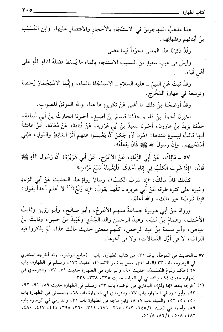 57 - مَالِكٌ عَنْ أَبِي الزِّنَادِ عَنِ الْأَعْرَجِ عَنْ أَبِي هُرَيْرَةَ أَنَّ رَسُولَ اللَّهِ صَلَّى اللَّهُ عليه وسلم قَالَ ((إِذَا شَرِبَ الْكَلْبُ فِي إِنَاءِ أَحَدِكُمْ فَلْيَغْسِلْهُ سَبْعَ مَرَّاتٍ))