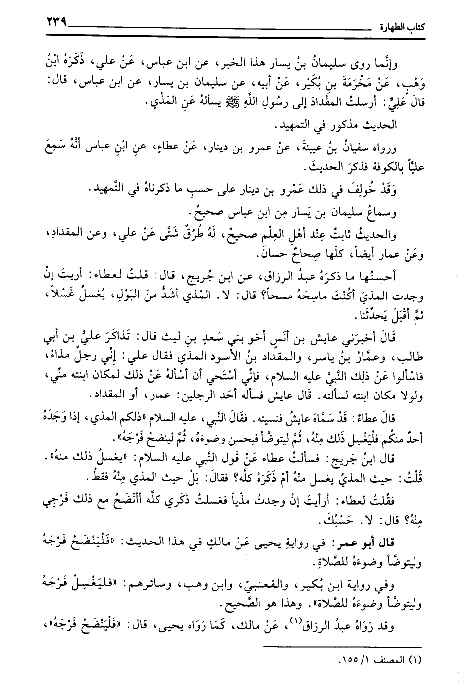 قال بن جُرَيْجٍ فَسَأَلْتُ عَطَاءً عَنْ قَوْلِ النَّبِيِّ عَلَيْهِ السَّلَامُ ((يَغْسِلُ ذَلِكَ مِنْهُ)) قُلْتُ حَيْثُ الْمَذْيُ يَغْسِلُ مِنْهُ أَمْ ذَكَرَهُ كُلَّهُ فَقَالَ بَلْ حَيْثُ الْمَذْيُ مِنْهُ فَقَطْ