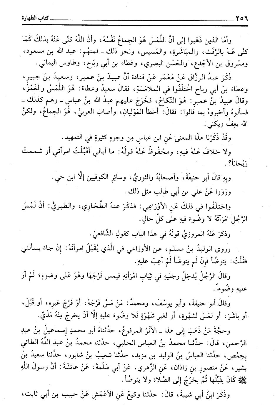 وَحُجَّةُ مَنْ ذَهَبَ إِلَى هَذَا - الْأَثَرُ الْمَرْفُوعُ حَدَّثَنَاهُ أَبُو مُحَمَّدٍ إِسْمَاعِيلُ بْنُ عَبْدِ الرَّحْمَنِ قَالَ حَدَّثَنَا مُحَمَّدُ بْنُ الْعَبَّاسِ الْحَلَبِيُّ حَدَّثَنَا مُحَمَّدُ بْنُ عَبْدِ اللَّهِ الطَّائِيُّ بِحِمْصَ حَدَّثَنَا الْعَبَّاسُ بْنُ الْوَلِيدِ بْنِ مَزْيَدٍ حَدَّثَنَا شُعَيْبُ بْنُ شَابُورٍ حَدَّثَنَا سَعِيدُ بْنُ بَشِيرٍ عَنْ مَنْصُورِ بْنِ زَاذَانَ عَنِ الزُّهْرِيِّ عَنْ أَبِي سَلَمَةَ عَنْ عَائِشَةَ أَنَّ رَسُولَ اللَّهِ صَلَّى اللَّهُ عَلَيْهِ وَسَلَّمَ كَانَ يُقَبِّلُهَا ثُمَّ يَخْرُجُ إِلَى الصلاة ولا يتوضأ