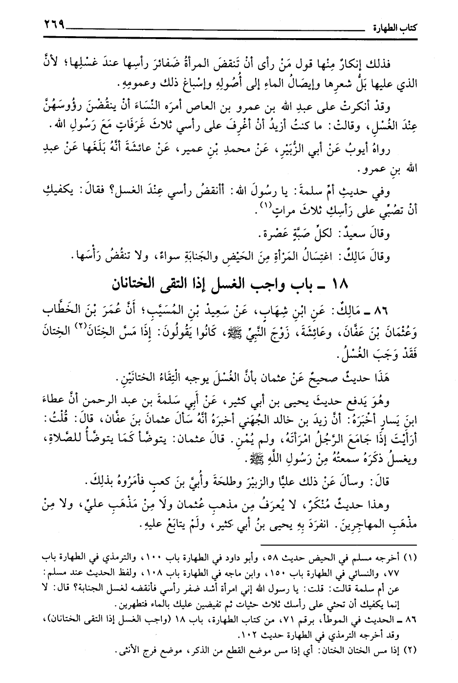 86 - مالك عن بن شِهَابٍ عَنْ سَعِيدِ بْنِ الْمُسَيَّبِ أَنَّ عُمَرَ بْنَ الْخَطَّابِ وَعُثْمَانَ بْنَ عَفَّانَ وَعَائِشَةَ زَوْجَ النَّبِيِّ صَلَّى اللَّهُ عَلَيْهِ وَسَلَّمَ كَانُوا يَقُولُونَ إِذَا مَسَّ الْخِتَانُ الْخِتَانَ فَقَدْ وَجَبَ الْغُسْلُ