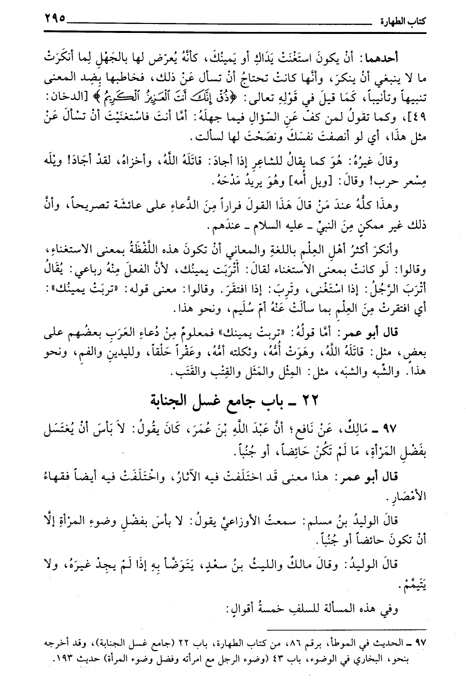 قَالَ أَبُو عُمَرَ هَذَا مَعْنًى قَدِ اخْتَلَفَتْ فِيهِ الْآثَارُ وَاخْتَلَفَتْ فِيهِ أَيْضًا فُقَهَاءُ الْأَمْصَارِ
