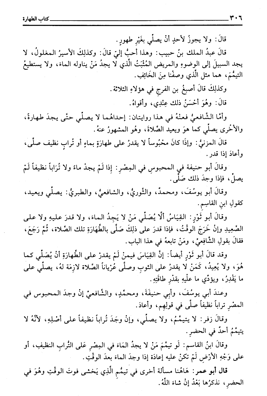 قَالَ أَبُو عُمَرَ هَا هُنَا مَسْأَلَةٌ أُخْرَى فِي تَيَمُّمِ الَّذِي يَخْشَى فَوْتَ الْوَقْتِ وَهُوَ فِي الْحَضَرِ نَذْكُرُهَا بَعْدُ إِنْ شَاءَ اللَّهُ