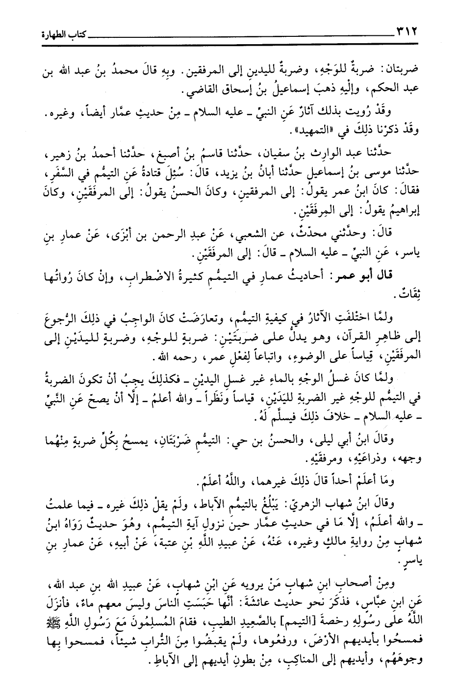 وقال بن شِهَابٍ الزُّهْرِيُّ يَبْلُغُ بِالتَّيَمُّمِ الْآبَاطَ وَلَمْ يَقُلْ ذَلِكَ غَيْرُهُ - فِيمَا عَلِمْتُ - وَاللَّهُ أَعْلَمُ إِلَّا مَا فِي حَدِيثِ عَمَّارٍ حِينَ نُزُولِ آيَةِ التيمم وهو حديث رواه بن شِهَابٍ مِنْ رِوَايَةِ مَالِكٍ وَغَيْرِهِ عَنْهُ عَنْ عُبَيْدِ اللَّهِ بْنِ عُتْبَةَ عَنْ أَبِيهِ عَنْ عمار بن ياسر