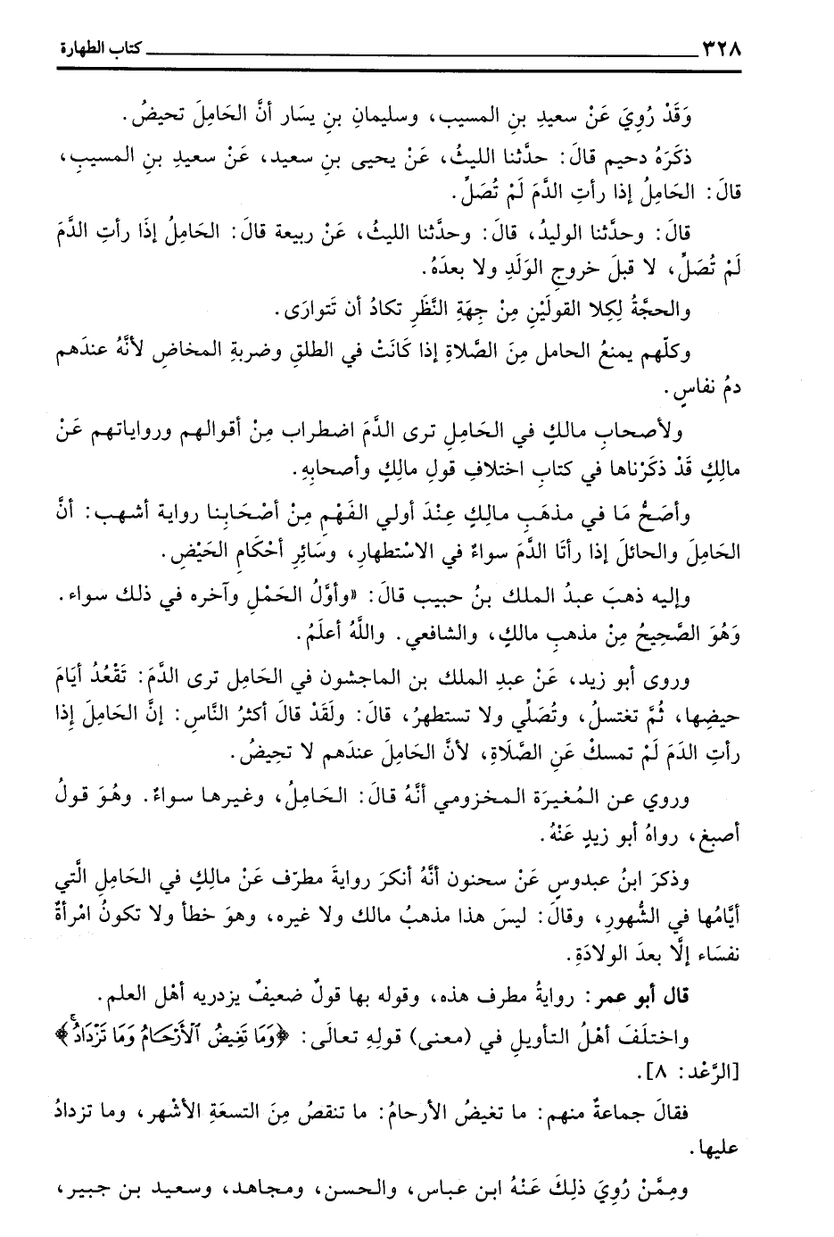 وَرَوَى أَبُو زَيْدٍ عَنْ عَبْدِ الْمَلِكِ بْنِ الْمَاجِشُونِ فِي الْحَامِلِ تَرَى الدَّمَ تَقْعُدُ أَيَّامَ حَيْضِهَا ثُمَّ تَغْتَسِلُ وَتُصَلِّي وَلَا تَسْتَطْهِرُ قَالَ وَلَقَدْ قَالَ أَكْثَرُ النَّاسِ إِنَّ الْحَامِلَ إِذَا رَأَتِ الدَّمَ لَمْ تُمْسِكْ عَنِ الصَّلَاةِ لِأَنَّ الْحَامِلَ عِنْدَهُمْ لَا تَحِيضُ