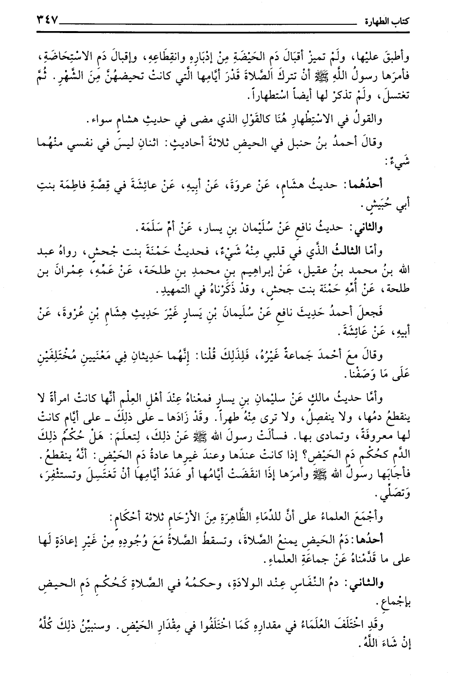 وَقَالَ أَحْمَدُ بْنُ حَنْبَلٍ فِي الْحَيْضِ ثَلَاثَةَ أَحَادِيثَ اثْنَانِ لَيْسَ فِي نَفْسِي مِنْهُمَا شَيْءٌ