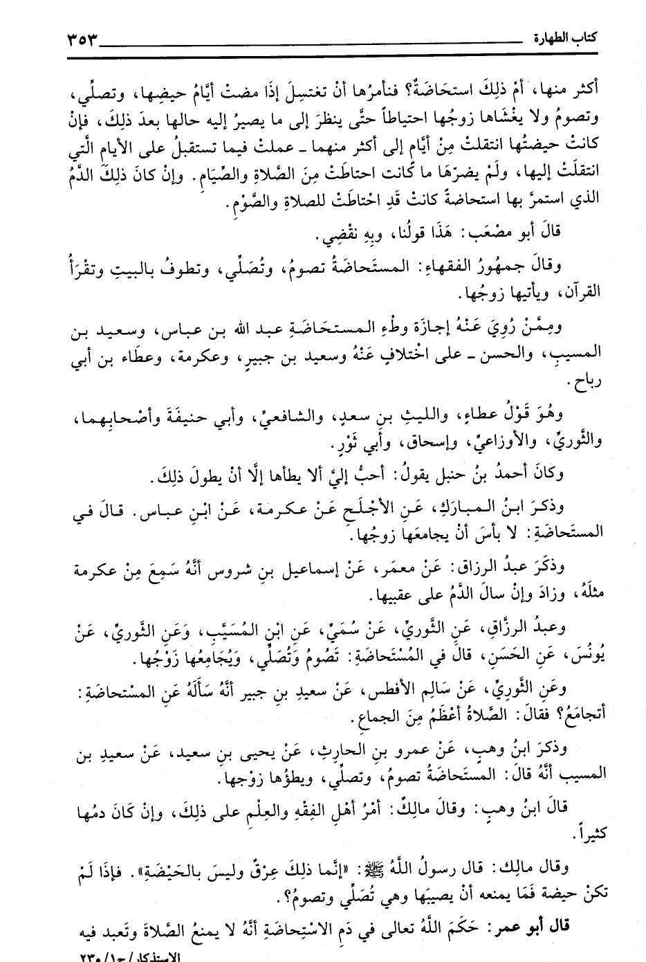 وَقَالَ جُمْهُورُ الْفُقَهَاءِ الْمُسْتَحَاضَةُ تَصُومُ وَتُصَلِّي وَتَطُوفُ بِالْبَيْتِ وَتَقْرَأُ الْقُرْآنَ وَيَأْتِيهَا زَوْجُهَا