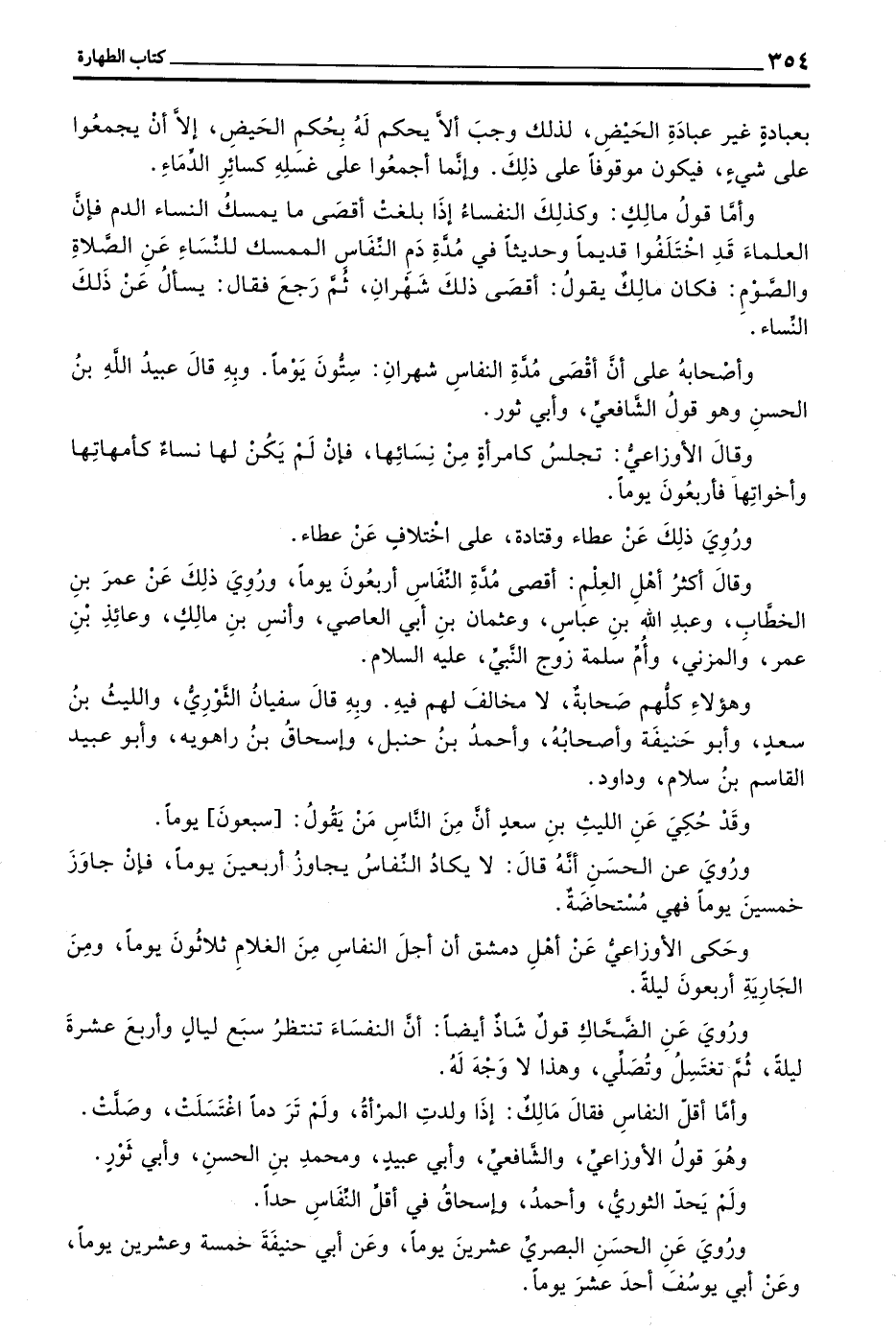 وَقَالَ أَكْثَرُ أَهْلِ الْعِلْمِ أَقْصَى مُدَّةِ النِّفَاسِ أَرْبَعُونَ يَوْمًا وَرُوِيَ ذَلِكَ عَنْ عُمَرَ بْنِ الْخَطَّابِ وَعَبْدِ اللَّهِ بْنِ عَبَّاسٍ وَعُثْمَانَ بْنِ أَبِي الْعَاصِي وَأَنَسِ بْنِ مَالِكٍ وَعَائِذِ بْنِ عُمَرَ وَالْمُزَنِيِّ وَأُمِّ سَلَمَةَ زَوْجِ النَّبِيِّ عَلَيْهِ السَّلَامُ