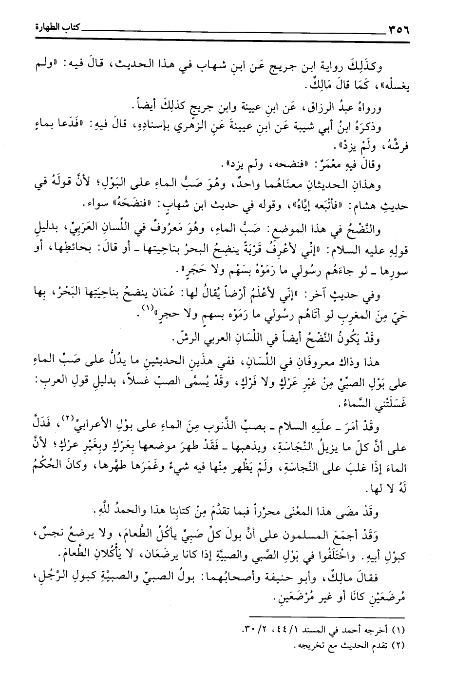وَقَدْ أَجْمَعَ الْمُسْلِمُونَ عَلَى أَنَّ بَوْلَ كُلِّ صَبِيٍّ يَأْكُلُ الطَّعَامَ وَلَا يَرْضَعُ نَجِسٌ كَبَوْلِ أَبِيهِ وَاخْتَلَفُوا فِي بَوْلِ الصَّبِيِّ وَالصَّبِيَّةِ إِذَا كَانَا يَرْضَعَانِ لَا يَأْكُلَانِ الطَّعَامَ