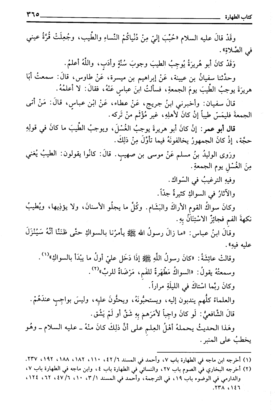 وقال بن عَبَّاسٍ ((مَا زَالَ رَسُولُ اللَّهِ صَلَّى اللَّهُ عَلَيْهِ وَسَلَّمَ يَأْمُرُنَا بِالسِّوَاكِ حَتَّى ظَنَنَّا أَنَّهُ سَيُنْزَلُ عَلَيْهِ فِيهِ))