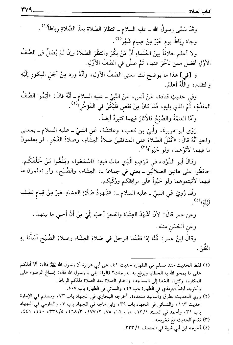وَفِي هَذَا مَا يُوَضِّحُ لَكَ مَعْنَى الصَّفِّ الْأَوَّلِ وَأَنَّهُ وَرَدَ مِنْ أَجْلِ الْبُكُورِ إِلَيْهِ وَالتَّقَدُّمِ وَاللَّهُ أَعْلَمُ