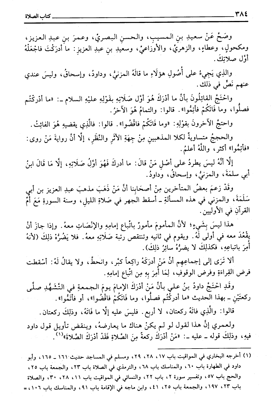 إِلَّا أَنَّهُ لَيْسَ يَطَّرِدُ عَلَى أَصْلِ مَنْ قَالَ مَا أَدْرَكَ فَهُوَ أَوَّلُ صَلَاتِهِ إِلَّا مَا قَالَ بن أَبِي سَلَمَةَ وَالْمُزَنِيُّ وَإِسْحَاقُ وَدَاوُدُ