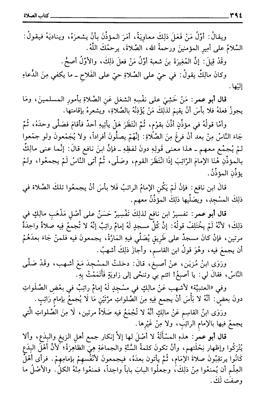 وَيُقَالُ أَوَّلُ مَنْ فَعَلَ ذَلِكَ مُعَاوِيَةُ أَمَرَ الْمُؤَذِّنَ بِأَنْ يُشْعِرَهُ وَيُنَادِيَهُ فَيَقُولُ السَّلَامُ عَلَى أَمِيرِ الْمُؤْمِنِينَ وَرَحْمَةُ اللَّهِ الصَّلَاةَ يَرْحَمُكَ اللَّهُ