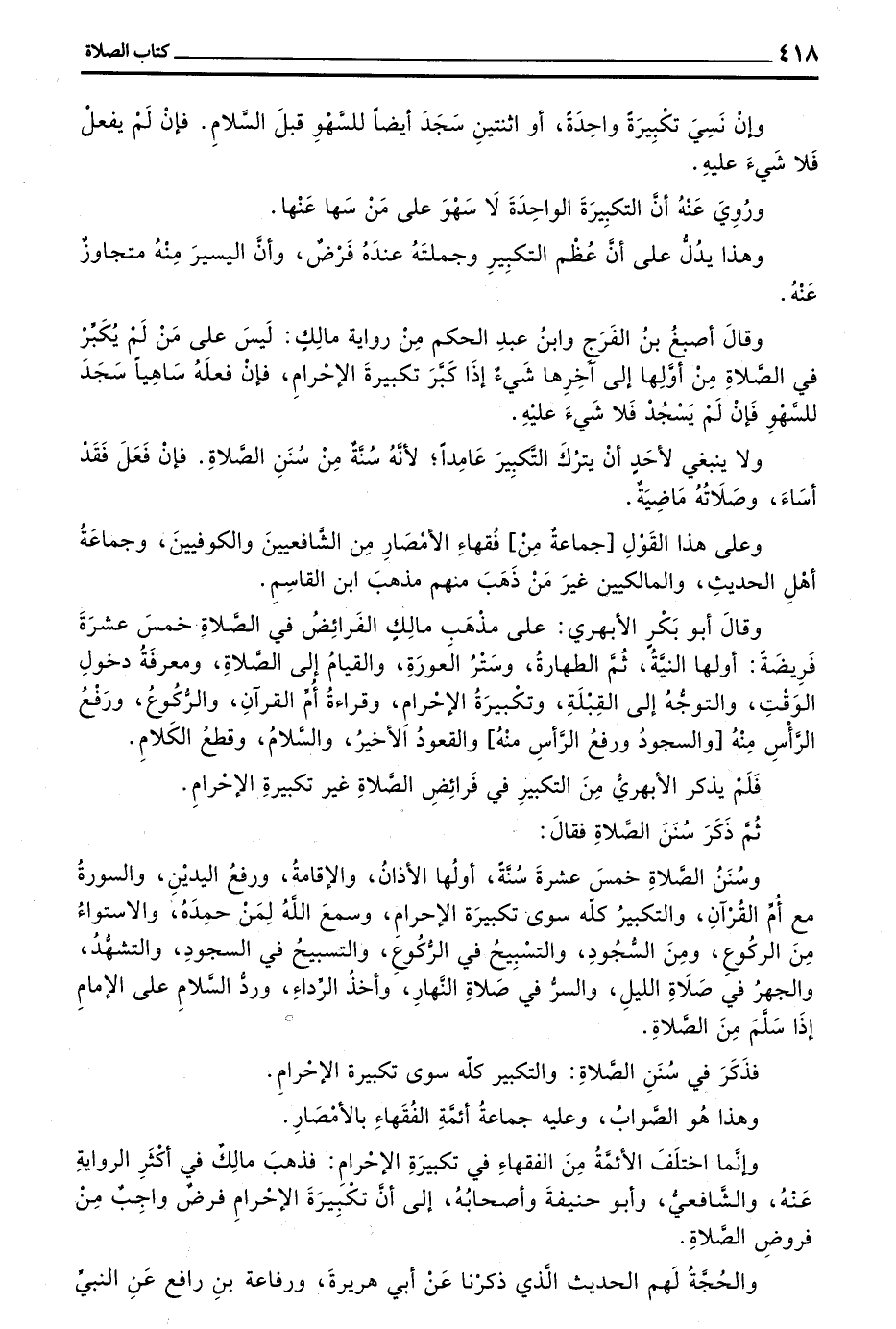 وَإِنَّمَا اخْتَلَفَ الْأَئِمَّةُ مِنَ الْفُقَهَاءِ فِي تَكْبِيرَةِ الْإِحْرَامِ فَذَهَبَ مَالِكٌ فِي أَكْثَرِ الرِّوَايَةِ عَنْهُ وَالشَّافِعِيُّ وَأَبُو حَنِيفَةَ وَأَصْحَابُهُ إِلَى أَنَّ تَكْبِيرَةَ الْإِحْرَامِ فَرْضٌ وَاجِبٌ مِنَ فُرُوضِ الصَّلَاةِ