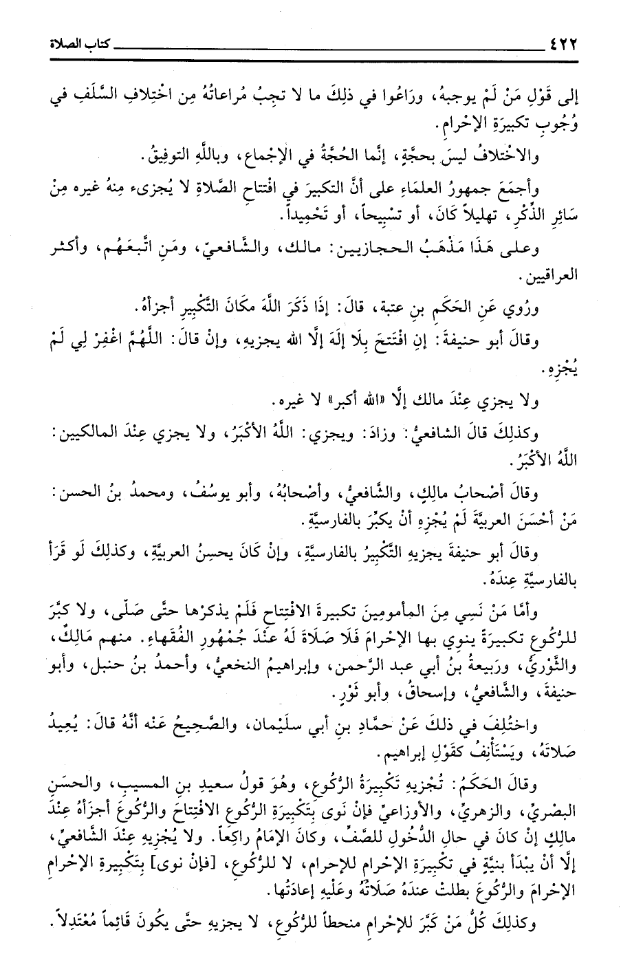 وَأَجْمَعَ جُمْهُورُ الْعُلَمَاءِ عَلَى أَنَّ التَّكْبِيرَ فِي افْتِتَاحِ الصَّلَاةِ لَا يُجْزِئُ مِنْهُ غَيْرُهُ مِنْ سَائِرِ الذِّكْرِ تَهْلِيلًا كَانَ أَوْ تَسْبِيحًا أَوْ تَحْمِيدًا