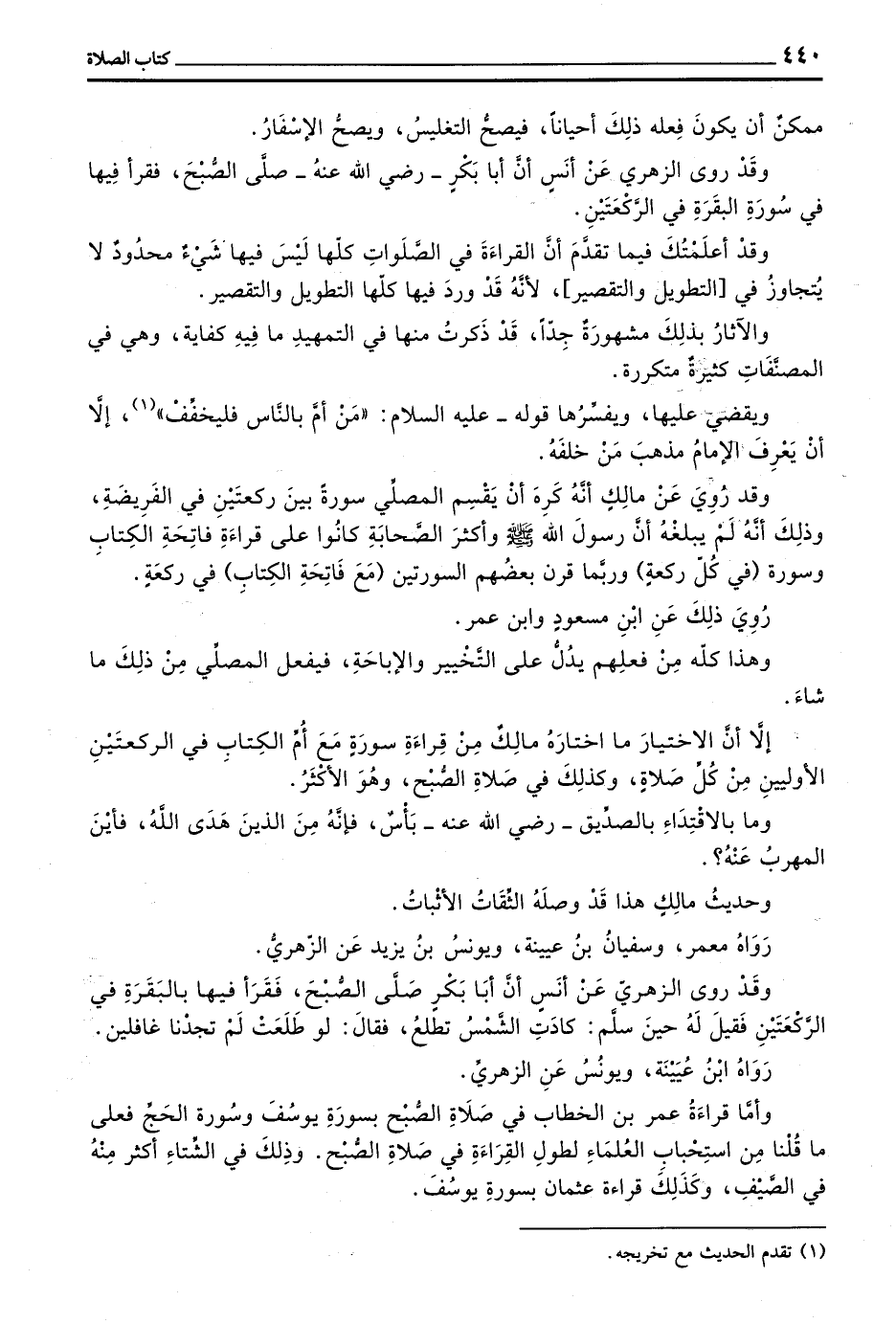 إِلَّا أَنَّ الِاخْتِيَارَ مَا اخْتَارَهُ مَالِكٌ مِنْ قِرَاءَةِ سُورَةٍ مَعَ أُمِّ الْكِتَابِ فِي الرَّكْعَتَيْنِ الْأُولَيَيْنِ مِنْ كُلِّ صَلَاةٍ وَكَذَلِكَ فِي صَلَاةِ الصُّبْحِ وَهُوَ الْأَكْثَرُ
