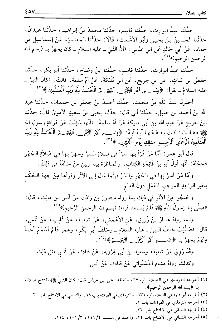 حَدَّثَنَا عَبْدُ الْوَارِثِ حَدَّثَنَا قَاسِمٌ حَدَّثَنَا مُحَمَّدُ بْنُ إِبْرَاهِيمَ حَدَّثَنَا عَبْدَانُ حَدَّثَنَا الْحُسَيْنُ بْنُ يَحْيَى وَأَبُو الْأَشْعَثِ قَالَا حَدَّثَنَا الْمُعْتَمِرُ عَنْ إِسْمَاعِيلِ بْنِ حَمَّادٍ عَنْ أَبِي خَالِدٍ عَنِ بن عَبَّاسٍ ((أَنَّ النَّبِيَّ - عَلَيْهِ السَّلَامُ - كَانَ يَجْهَرُ بَ (بِسْمِ اللَّهِ الرَّحْمَنِ الرَّحِيمِ)) )