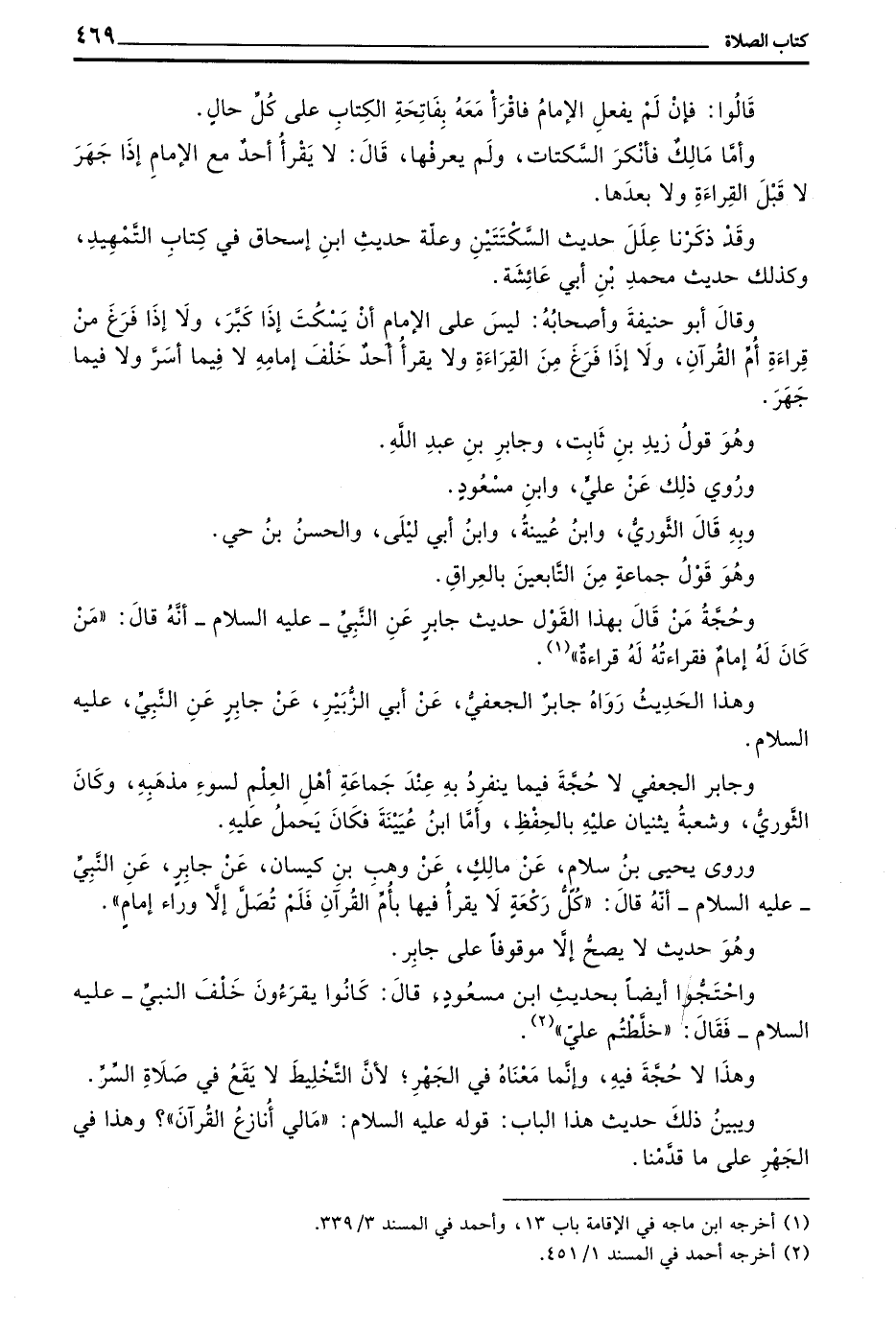 واحتجوا أيضا بحديث بن مسعود قال كانوا يقرؤون خَلْفَ النَّبِيِّ - عَلَيْهِ السَّلَامُ - فَقَالَ ((خَلَطْتُمْ عَلِيَّ))