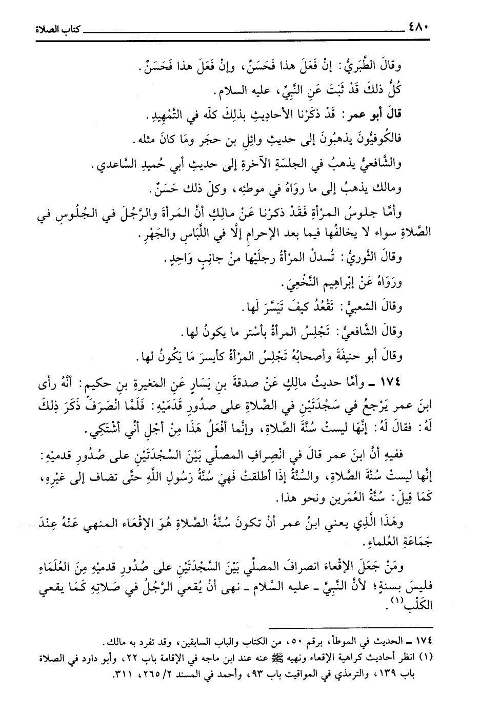 174 - وَأَمَّا حَدِيثُ مَالِكٍ عَنْ صَدَقَةَ بْنِ يَسَارٍ عَنِ المغيرة بن حكيم أنه رأى بن عُمَرَ يَرْجِعُ فِي سَجْدَتَيْنِ فِي الصَّلَاةِ عَلَى صُدُورِ قَدَمَيْهِ فَلَمَّا انْصَرَفَ ذَكَرَ ذَلِكَ لَهُ فَقَالَ لَهُ إِنَّهَا لَيْسَتْ سُنَّةَ الصَّلَاةِ وَإِنَّمَا أَفْعَلُ هَذَا مِنْ أَجْلِ أَنِّي أَشْتَكِي
