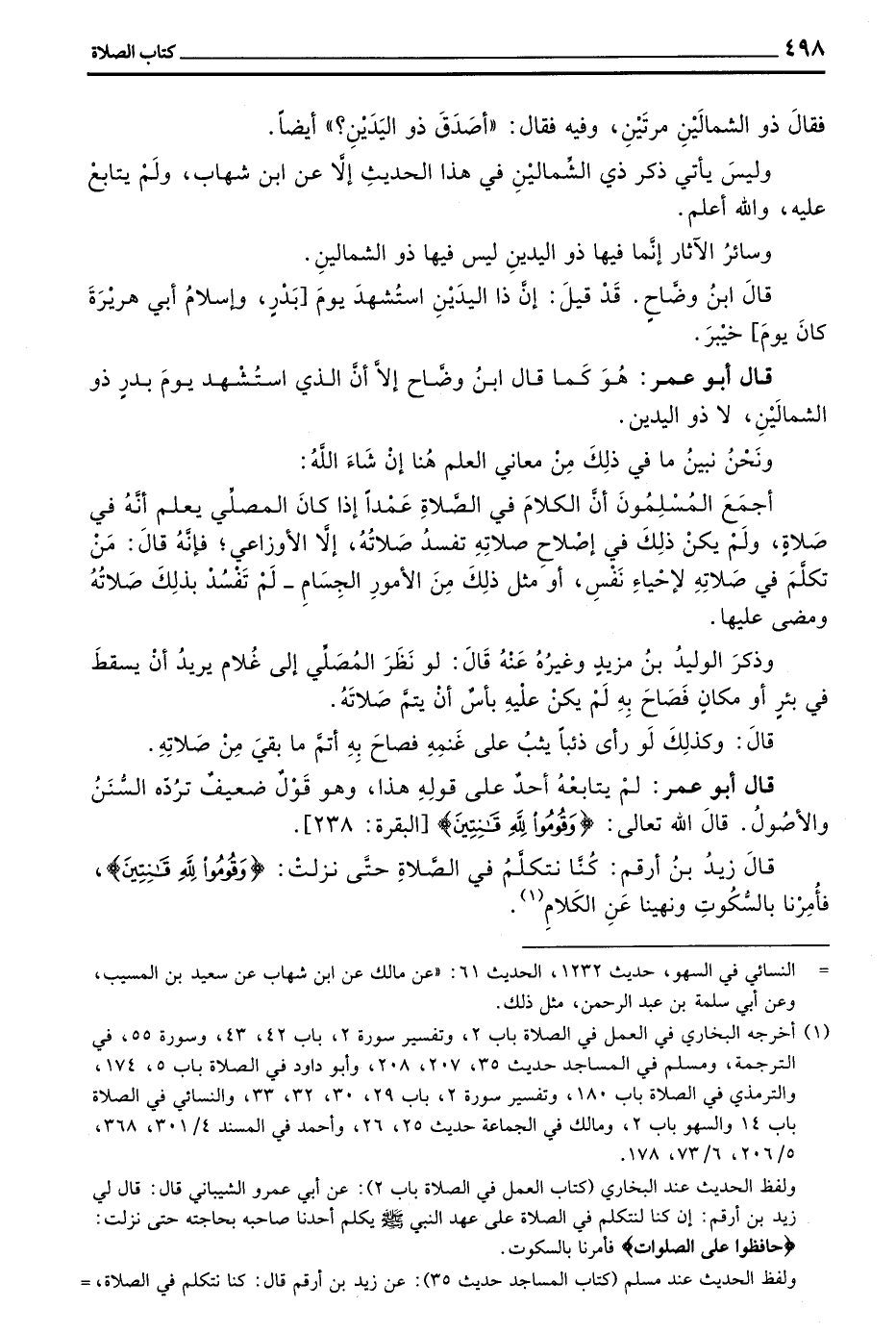 قَالَ أَبُو عُمَرَ هُوَ كَمَا قَالَ بن وَضَّاحٍ إِلَّا أَنَّ الَّذِي اسْتُشْهِدَ يَوْمَ بَدْرٍ ذُو الشِّمَالَيْنِ لَا ذُو الْيَدَيْنِ