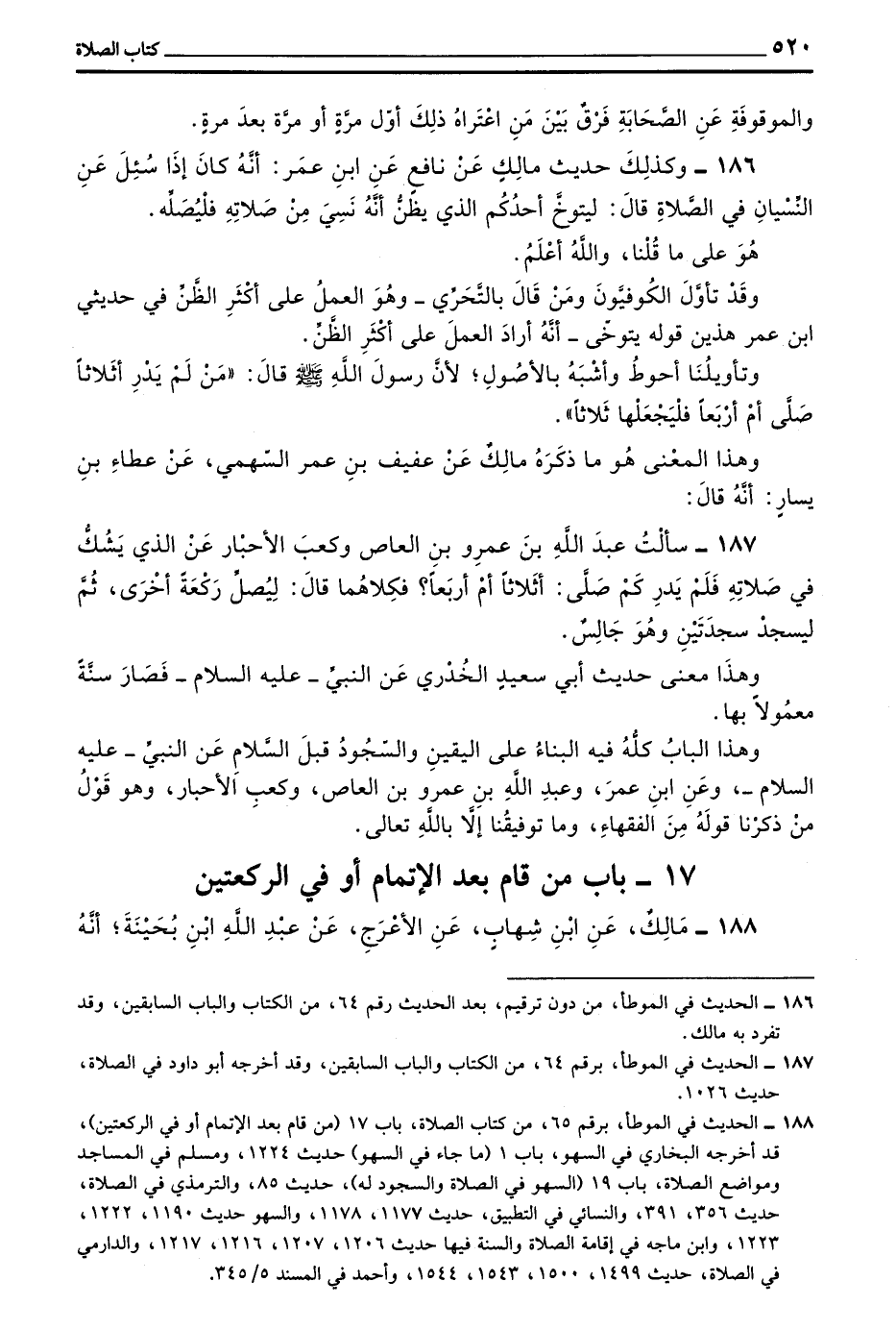 186 - وكذلك حديث مالك عن نافع عن بن عُمَرَ أَنَّهُ كَانَ إِذَا سُئِلَ عَنِ النِّسْيَانِ فِي الصَّلَاةِ قَالَ لِيَتَوَخَّ أَحَدُكُمُ الَّذِي يَظُنُّ أَنَّهُ نَسِيَ مِنْ صَلَاتِهِ فَلْيُصَلِّهِ