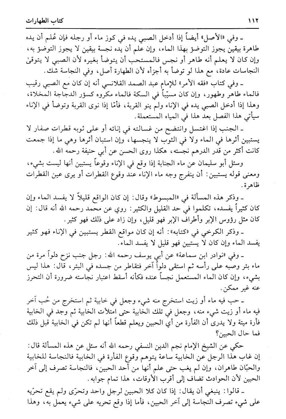 وذكر هذه المسألة في «المبسوط» وقال: إن كان الواقع قليلاً لا يفسد الماء وإن كان كثيراً يفسده، تكلموا في حد القليل والكثير: روي عن محمد رحمه الله أنه قال: إن كان مثل رؤوس الإبر وأطراف الإبر فهو قليل، وإن زاد على ذلك فهو كثير.