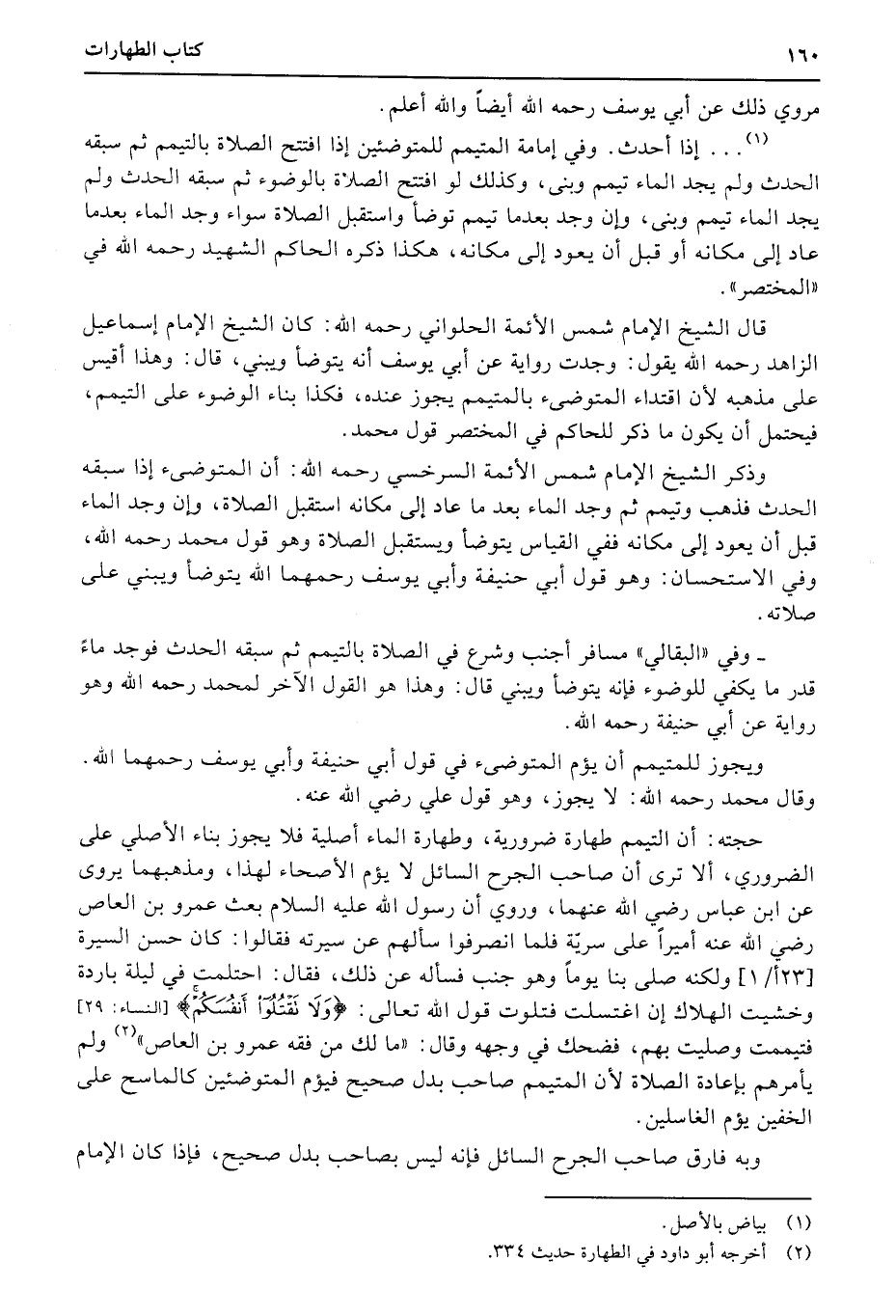 قال الشيخ الإمام شمس الأئمة الحلواني رحمه الله: كان الشيخ الإمام إسماعيل الزاهد رحمه الله يقول: وجدت رواية عن أبي يوسف أنه يتوضأ ويبني، قال: وهذا أقيس على مذهبه لأن اقتداء المتوضىء بالمتيمم يجوز عنده، فكذا بناء الوضوء على التيمم، فيحتمل أن يكون ما ذكر للحاكم في المختصر قول محمد.