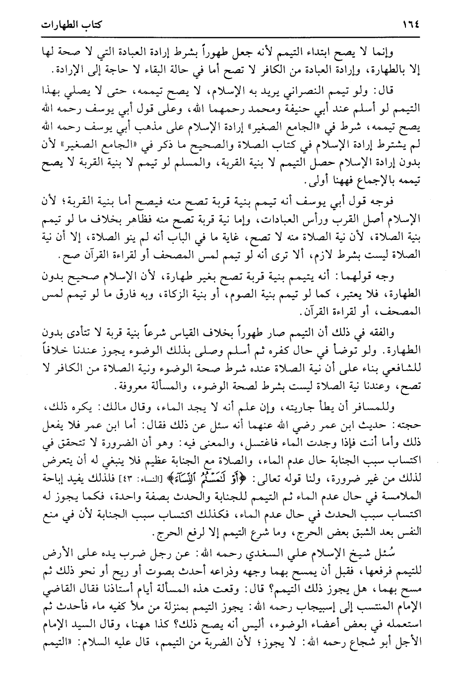 قال: ولو تيمم النصراني يريد به الإسلام، لا يصح تيممه، حتى لا يصلي بهذا التيمم لو أسلم عند أبي حنيفة ومحمد رحمهما الله، وعلى قول أبي يوسف رحمه الله يصح تيممه، شرط في «الجامع الصغير» إرادة الإسلام على مذهب أبي يوسف رحمه الله لم يشترط إرادة الإسلام في كتاب الصلاة والصحيح ما ذكر في «الجامع الصغير» لأن بدون إرادة الإسلام حصل التيمم لا بنية القربة، والمسلم لو تيمم لا بنية القربة لا يصح تيممه بالإجماع فههنا أولى.