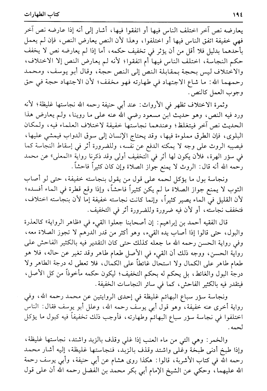 يعارضه نص آخر اختلف الناس فيها أو اتفقوا فيها، أشار إلى أنه إذا عارضه نص آخر فهي خفيفة اتفق الناس فيها أو اختلفوا، وهذا لأن النص يعارض النص، فإن لم يعمل بأحدهما بدليل فلا أقل من أن يؤثر في تخفيف حكمه، أما إذا لم يعارضه نص لا يخفف حكم النجاسة، اختلف الناس فيها أم اتفقوا؛ لأنه لم يعارض النص (إلا الاختلاف) ، والاختلاف ليس بحجة بمقابلة النص إلى النص حجة، وقال أبو يوسف، ومحمد رحمهما الله: ما شاع الاجتهاد في طهارته فهو مخفف؛ لأن الاجتهاد حجة في حق وجوب العمل كالنص.d