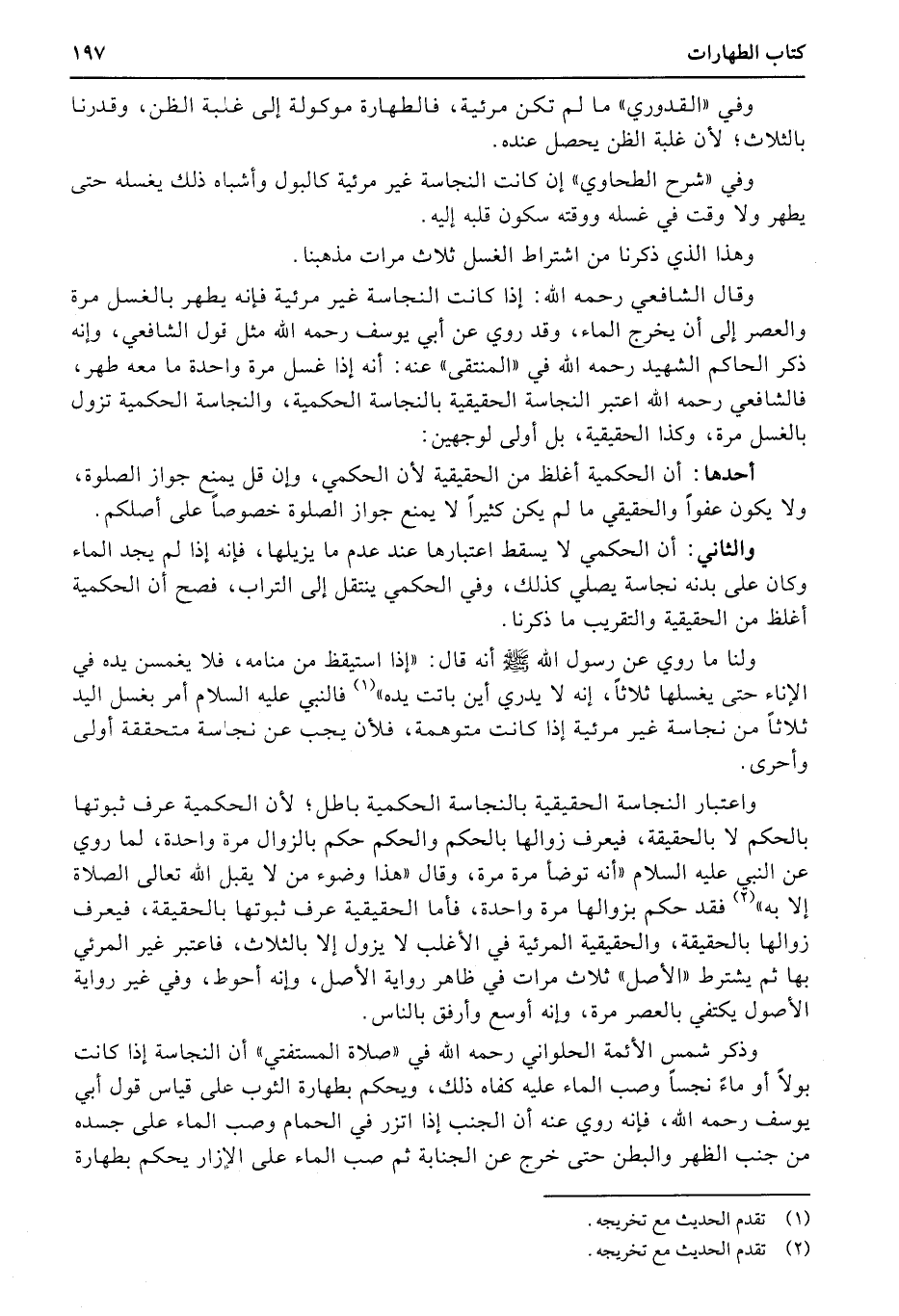 والثاني: أن الحكمي لا يسقط اعتبارها عند عدم ما يزيلها، فإنه إذا لم يجد الماء وكان على بدنه نجاسة يصلي كذلك، وفي الحكمي ينتقل إلى التراب، فصح أن الحكمية أغلظ من الحقيقية والتقريب ما ذكرنا.