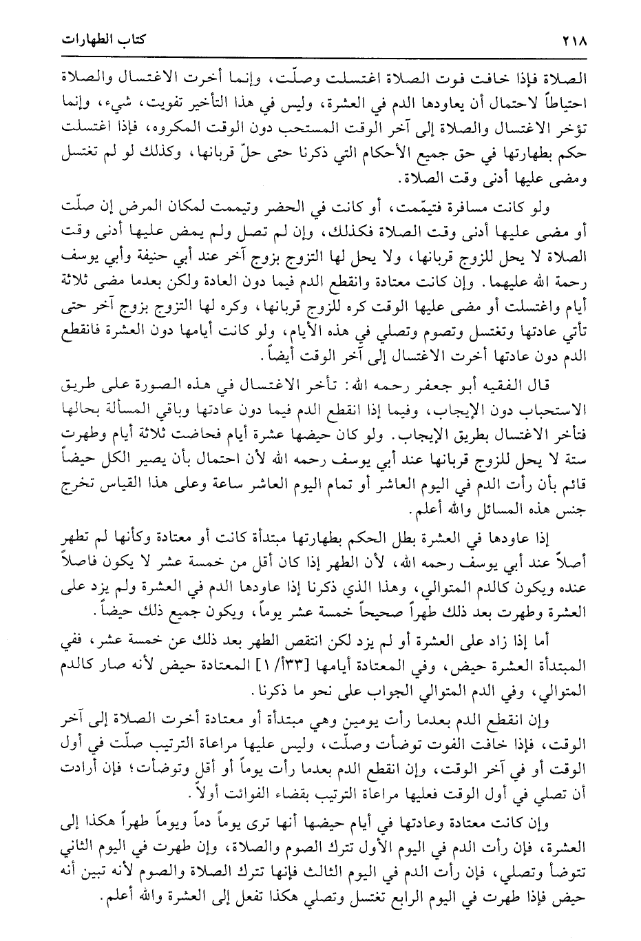 الصلاة فإذا خافت فوت الصلاة اغتسلت وصلّت، وإنما أخرت الاغتسال والصلاة احتياطاً لاحتمال أن يعاودها الدم في العشرة، وليس في هذا التأخير تفويت، شيء، وإنما تؤخر الاغتسال والصلاة إلى آخر الوقت المستحب دون الوقت المكروه، فإذا اغتسلت حكم بطهارتها في حق جميع الأحكام التي ذكرنا حتى حلّ قربانها، وكذلك لو لم تغتسل ومضى عليها أدنى وقت الصلاة.