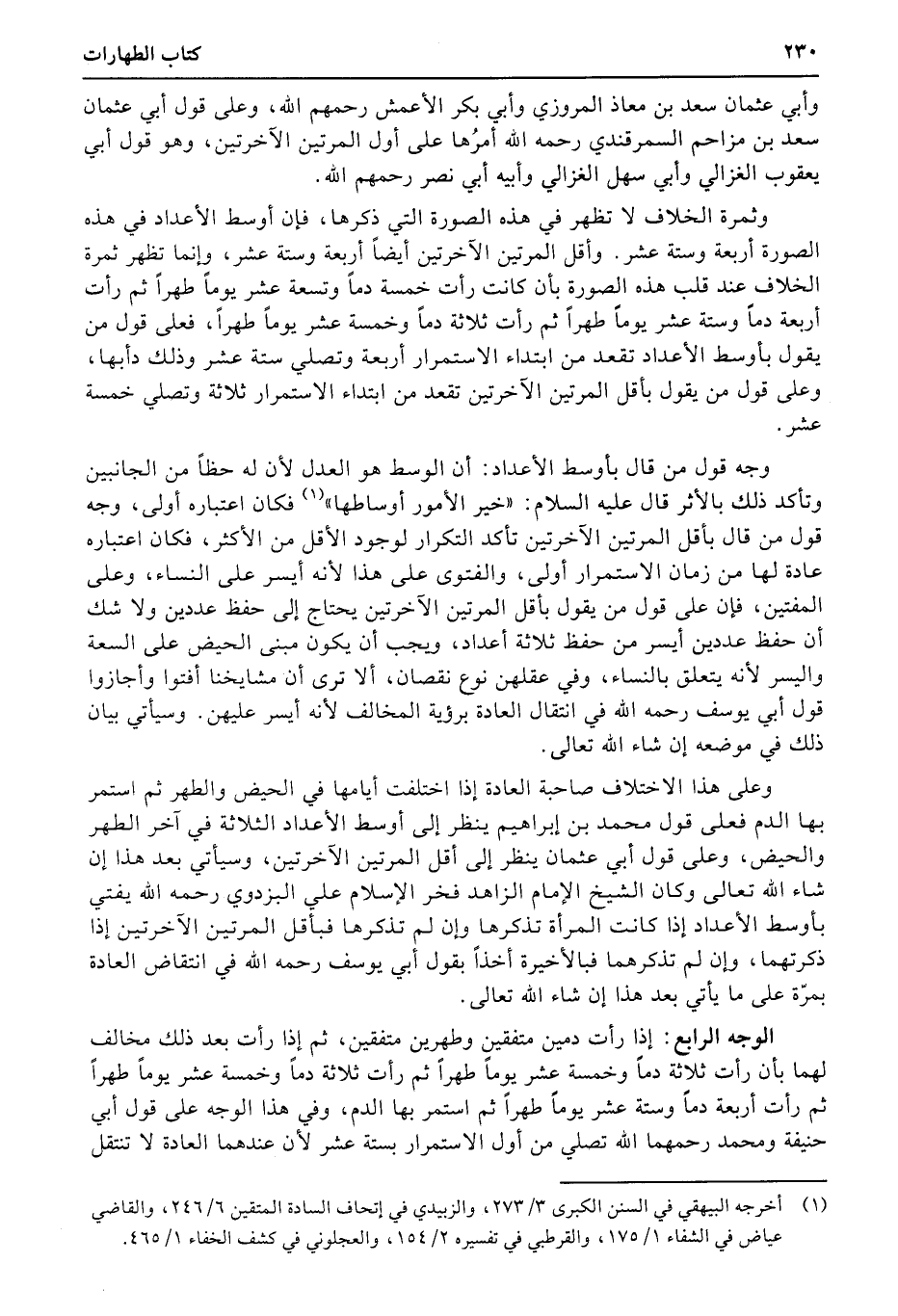 وأبي عثمان سعد بن معاذ المروزي وأبي بكر الأعمش رحمهم الله، وعلى قول أبي عثمان سعد بن مزاحم السمرقندي رحمه الله أمرُها على أول المرتين الآخرتين، وهو قول أبي يعقوب الغزالي وأبي سهل الغزالي وأبيه أبي نصر رحمهم الله.
