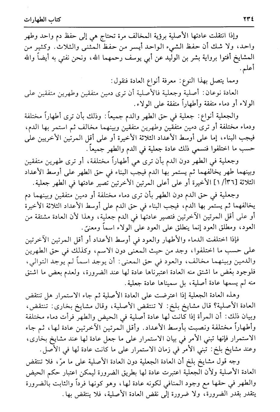 وإذا انتقلت عادتها الأصلية برؤية المخالف مرة تحتاج هي إلى حفظ دم واحد وطهر واحد، ولا شك أن حفظ الشيء الواحد أيسر من حفظ المثنى والثلاث. وكثير من المشايخ أفتوا برواية بشر بن الوليد عن أبي يوسف رحمهما الله، ونحن نفتي به أيضاً والله أعلم.