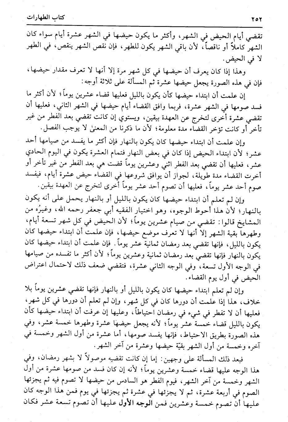 وإن لم تعلم أن ابتداء حيضها كان يكون بالليل أو بالنهار يحمل على أنه يكون بالنهار؛ لأن هذا أحوط الوجوه، وهو اختيار الفقيه أبي جعفر رحمه الله، وغيرُه من المشايخ قالوا: تقضي من صيام عشرين يوماً؛ لأن الحيض في كل شهر تسعة أيام، وطهرها بقية الشهر إلا أنها لا تعرف موضع حيضها، فإن علمت أن ابتداء حيضها كان يكون بالليل، فإنها تقضي بعد رمضان ثمانية عشر يوماً.h