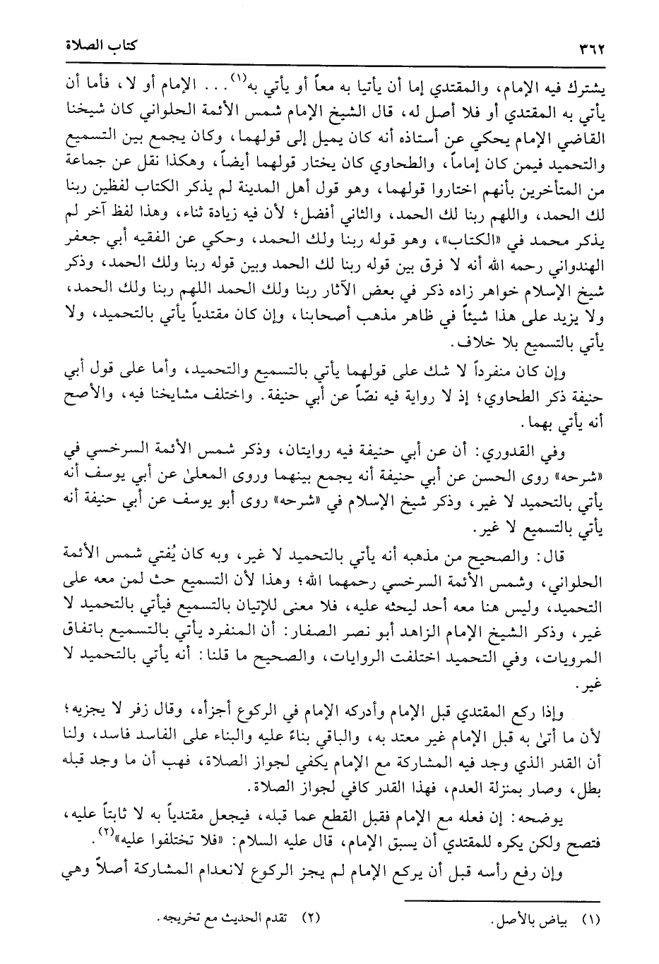 قال: والصحيح من مذهبه أنه يأتي بالتحميد لا غير، وبه كان يُفتي شمس الأئمة الحلواني، وشمس الأئمة السرخسي رحمهما الله؛ وهذا لأن التسميع حث لمن معه على التحميد، وليس هنا معه أحد ليحثه عليه، فلا معنى للإتيان بالتسميع فيأتي بالتحميد لا غير، وذكر الشيخ الإمام الزاهد أبو نصر الصفار: أن المنفرد يأتي بالتسميع باتفاق المرويات، وفي التحميد اختلفت الروايات، والصحيح ما قلنا: أنه يأتي بالتحميد لا غير.