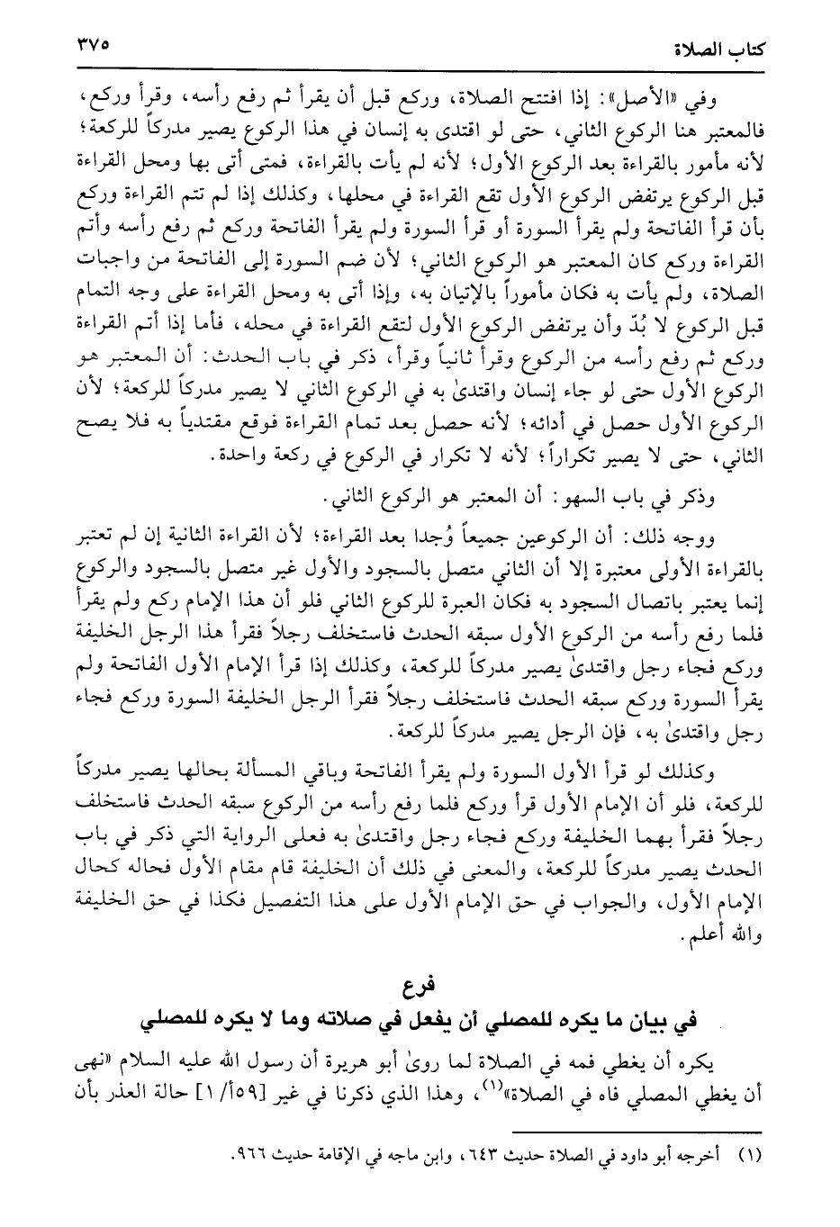 فرعفي بيان ما يكره للمصلي أن يفعل في صلاته وما لا يكره للمصلي