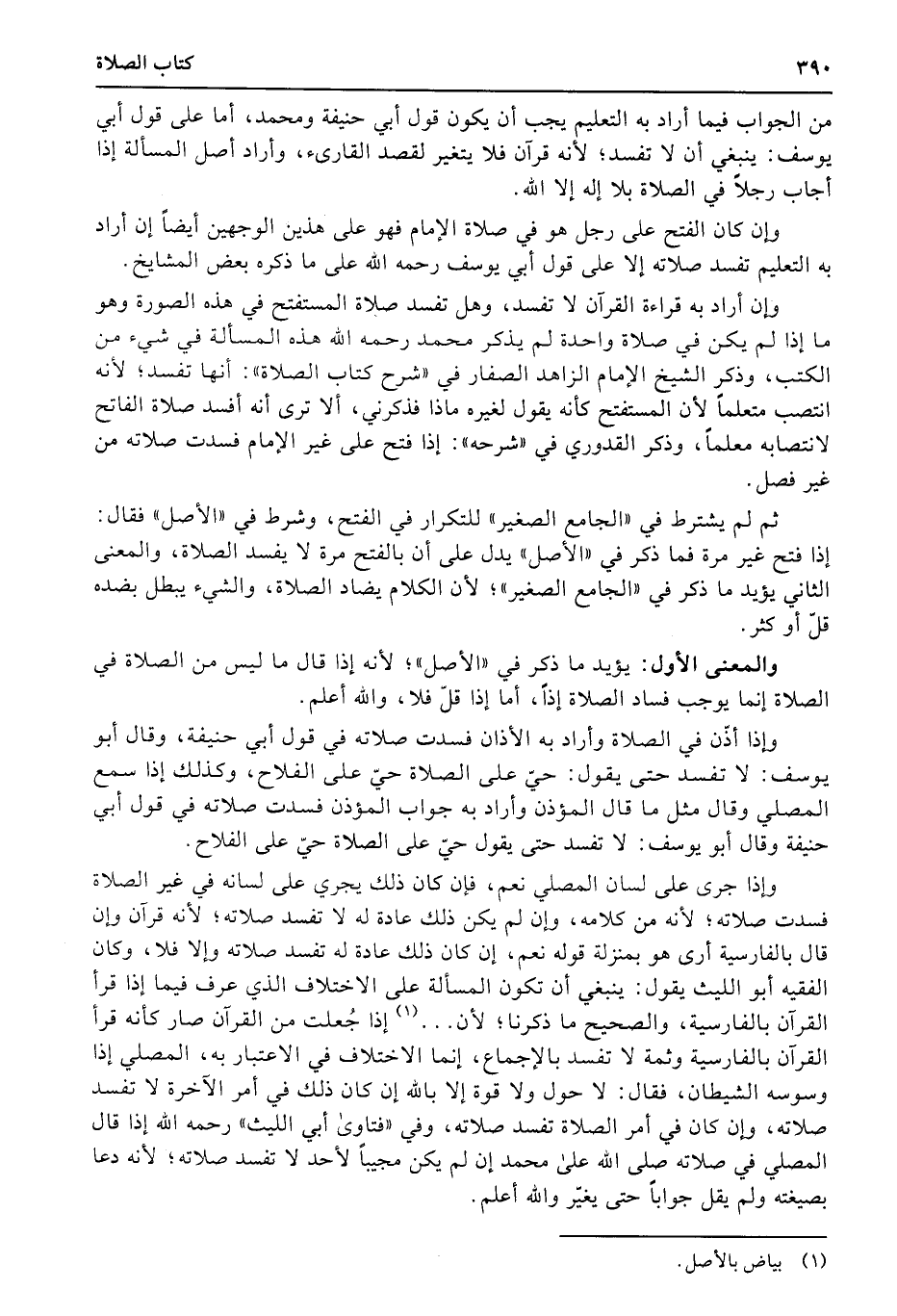 ثم لم يشترط في «الجامع الصغير» للتكرار في الفتح، وشرط في «الأصل» فقال: إذا فتح غير مرة فما ذكر في «الأصل» يدل على أن بالفتح مرة لا يفسد الصلاة، والمعنى الثاني يؤيد ما ذكر في «الجامع الصغير» ؛ لأن الكلام يضاد الصلاة، والشيء يبطل بضده قلّ أو كثر.