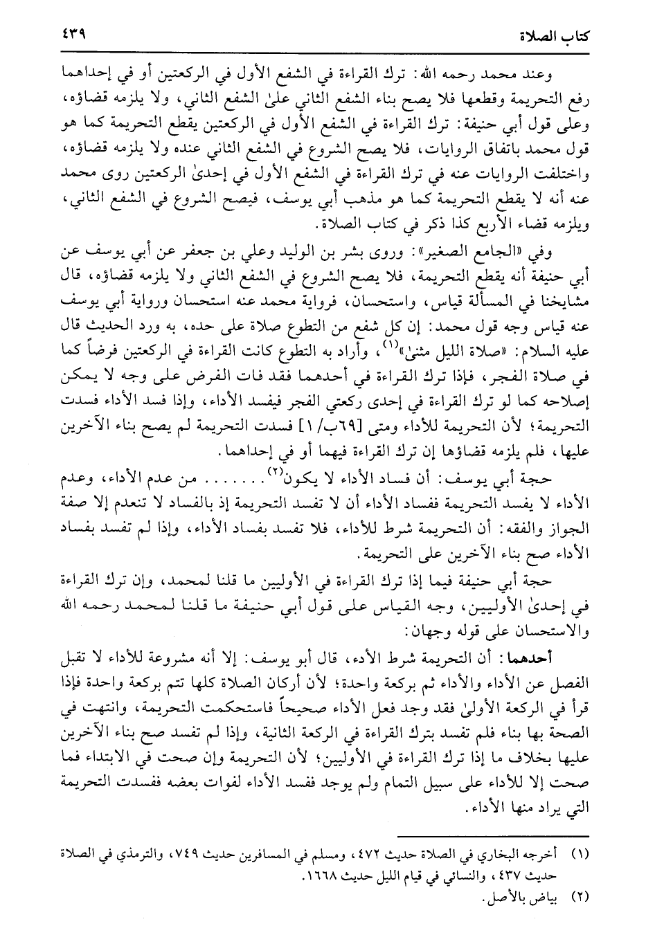 ثم في كل عمل يحتاج فيه إلى اليدين لإقامته أو أقام ذلك العمل بيد واحدة هل تفسد على قول من يعتبر لفساد الصلاة كون العمل بحال يحتاج لإقامته إلى اليدين، وذكر نجم الدين النسفي أنه لا تفسد فإنه قال: لو تعمم بيد واحدة لا تفسد ولو تعمم بيدين تفسد، ولو رفع العمامة من الرأس ووضعها على الأرض أو رفع العمامة عن الأرض ووضعها على الرأس لا تفسد صلاته أنه يحصل بيد واحدة من غير تكرار.