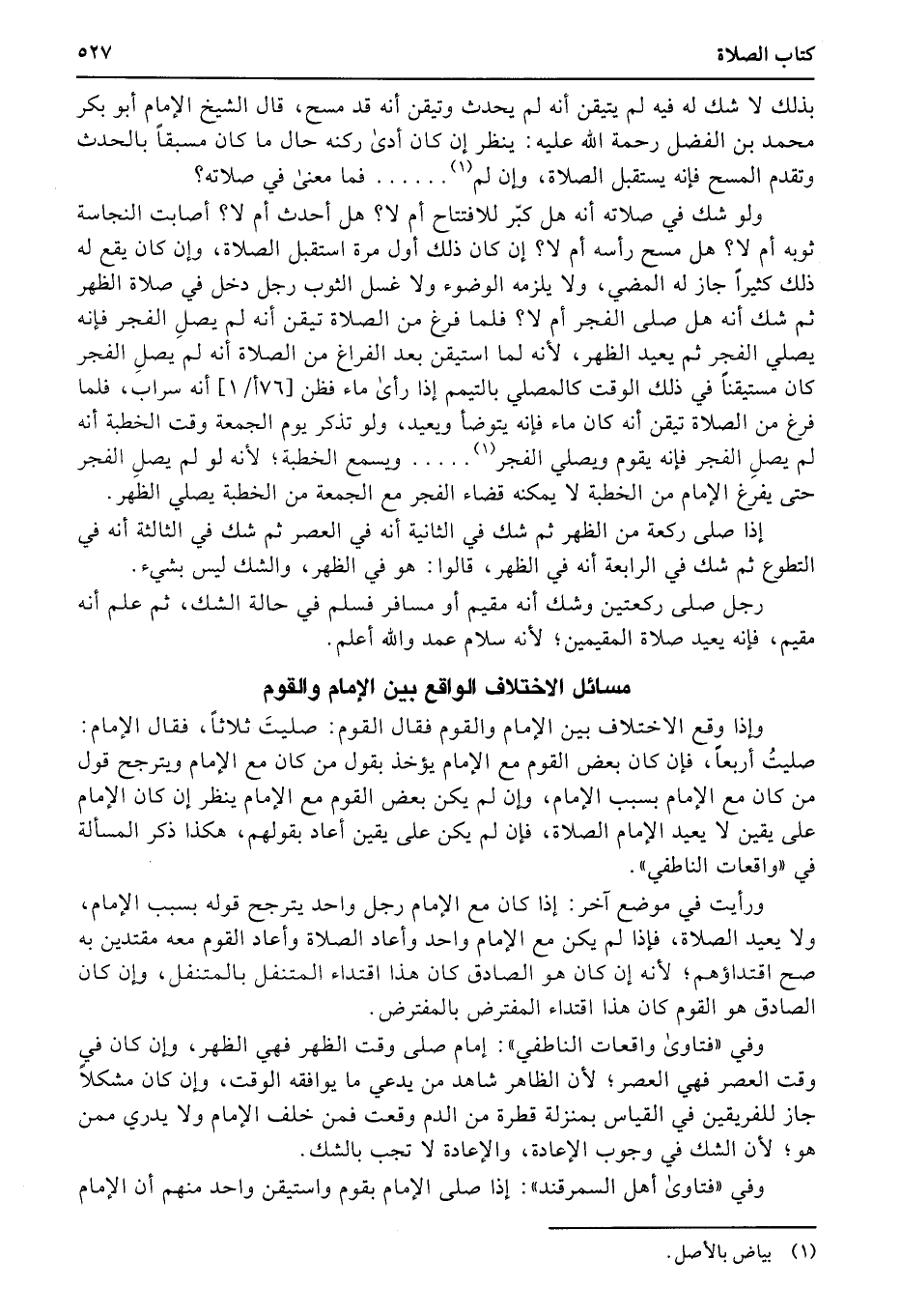 وفي «الفتاوى» : لأبي الليث رحمه الله: إذا صلى فسبقه الحدث في قيامه في موضع القراءة، فذهب ليتوضأ، فسبح في ذلك الوقت قبل أن يتوضأ فصلاته تامة وإن قرأ فصلاته فاسدة، لأنه أدى ركناً من الصلاة مع الحدث، والجواب بينما إذا قرأ ذاهباً أو عائداً عند بعض المشايخ، ومن المشايخ.... فقال: إن قرأ ذاهباً تفسد، وإن قرأ عائداً لا تفسد، ومنهم من قال على العكس، والمختار أنه لا فرق؛ لأنه إن قرأ ذاهباً فقد أدى ركناً من الصلاة مع الحدث، وإن قرأ عائداً فقد أدى ركناً من الصلاة مع عمل السير.