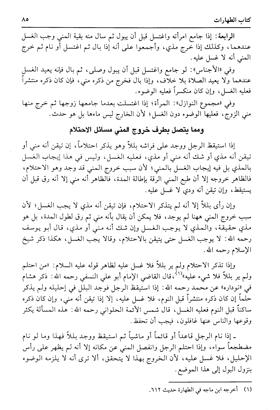 ومما يتصل بطرف خروج المني مسائل الاحتلام